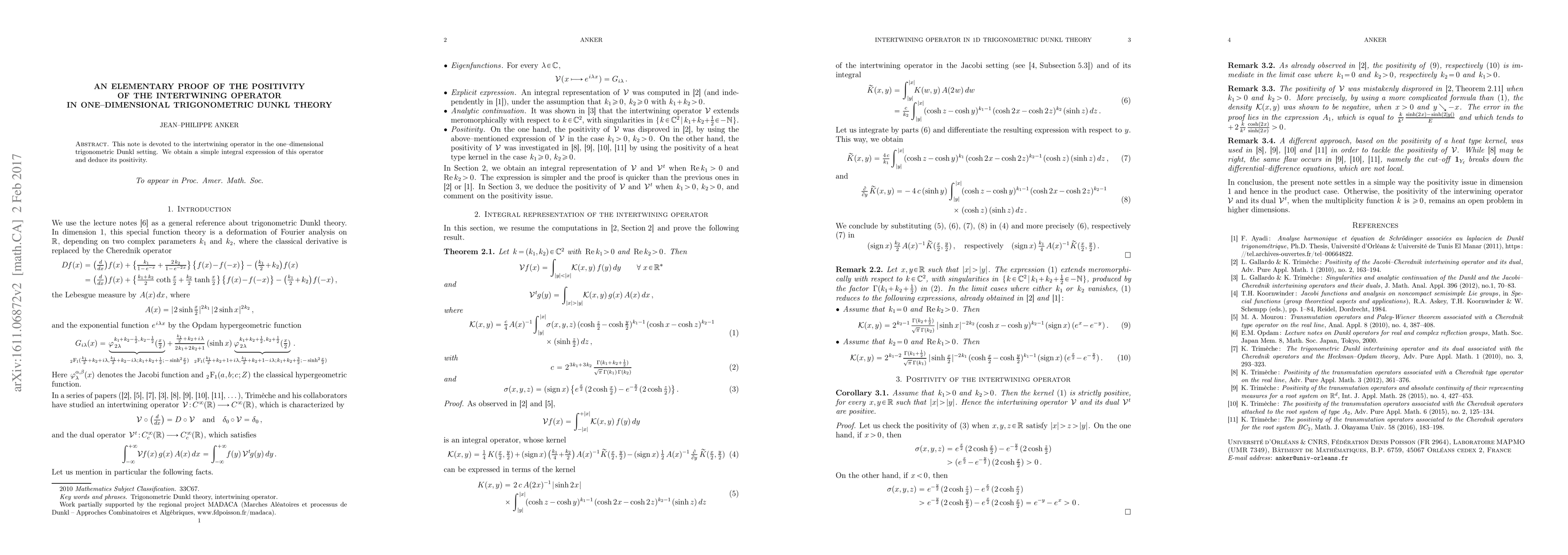 Summary: This paper presents an elementary proof for the positivity of the intertwining operator in one-dimensional trigonometric Dunkl theory, deriving a straightforward integral expression for the operator and establishing its positivity.