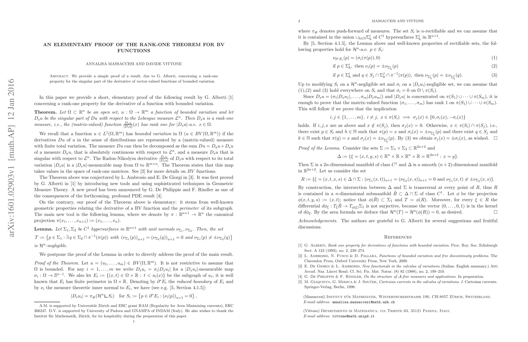 We provide a simple proof of a result, due to G. Alberti, concerning a rank-one property for the singular part of the derivative of vector-valued functions of bounded variation.