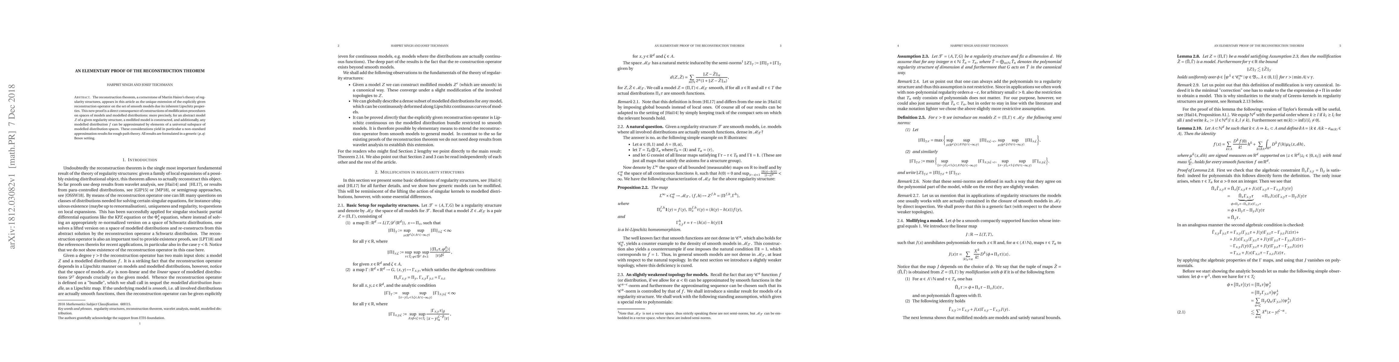 This paper presents an elementary proof of the reconstruction theorem in Martin Hairer's theory of regularity structures, utilizing Lipschitz properties and mollification procedures to extend the reconstruction operator. The proof also introduces approximation results for rough path theory within a generic $(p,q)$ Besov setting.
