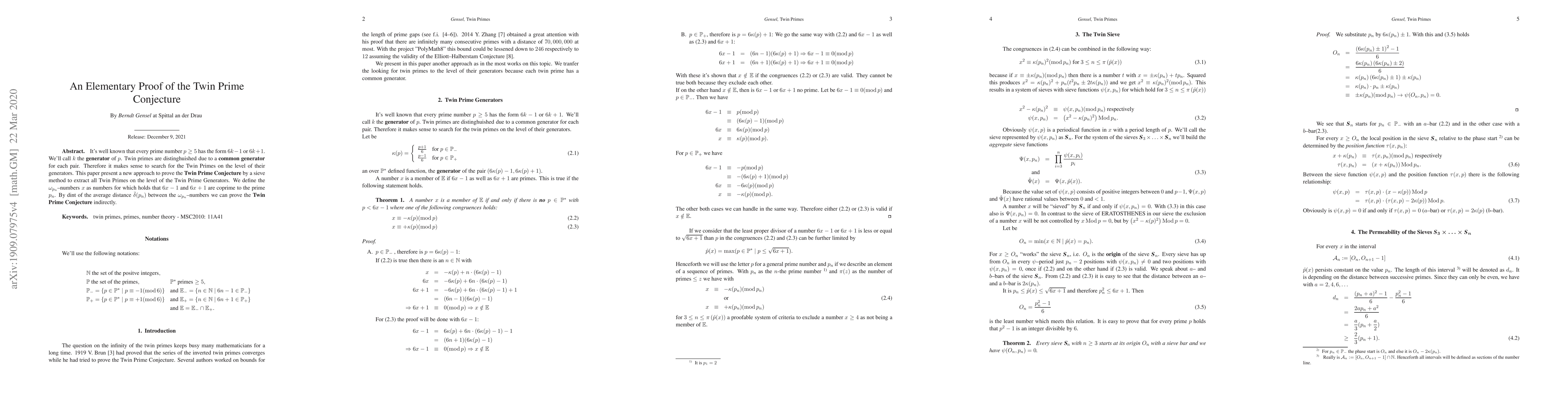 The research uses a sieve method to extract Twin Primes on the level of their generators.