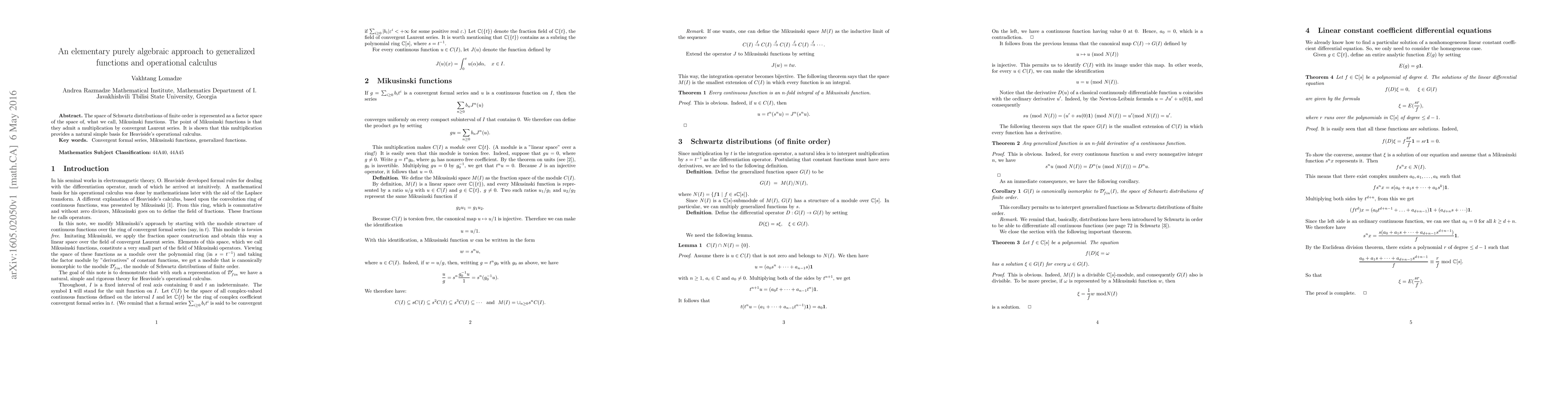This research introduces a new algebraic approach using Mikusinski functions to represent Schwartz distributions of finite order as a factor space. It demonstrates that multiplication by convergent Laurent series on these functions naturally forms a simple basis for Heaviside's operational calculus.