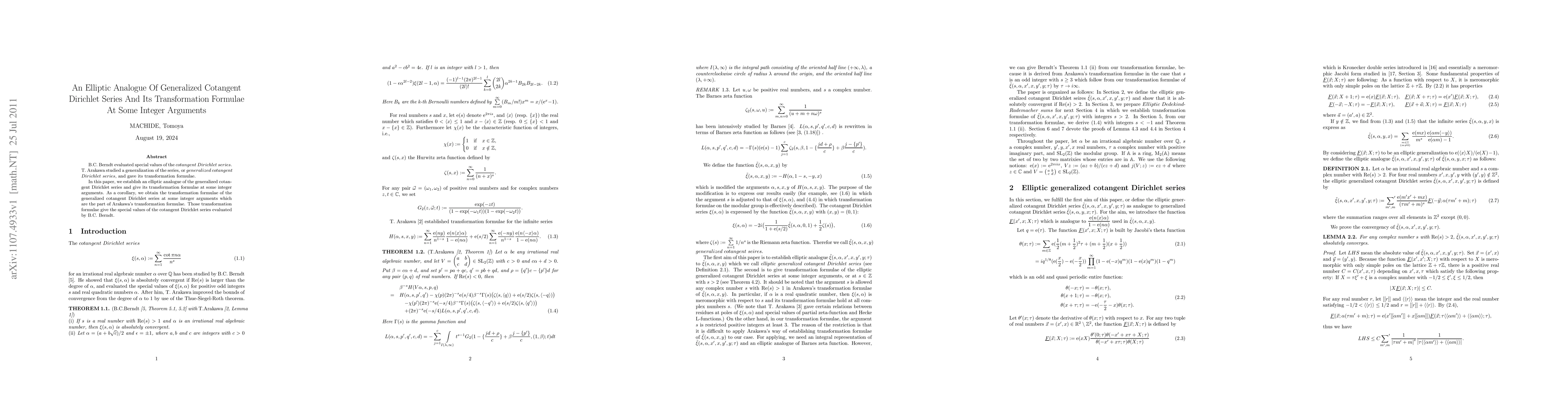 Researchers establish an elliptic analogue of a generalized mathematical series, providing transformation formulae that yield special values of another well-known series, and confirm previous findings in the field.