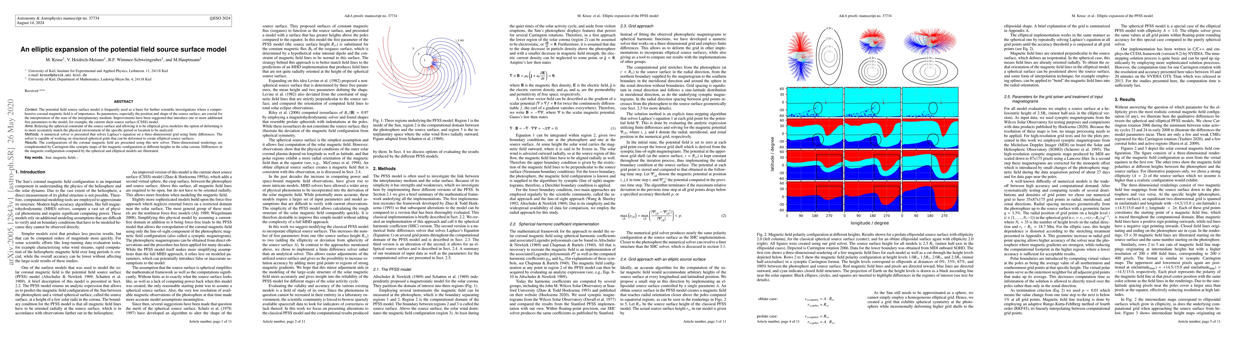 Context. The potential field source surface model is frequently used as a basis for further scientific investigations where a comprehensive coronal magnetic field is of importance. Its parameters, especially the position and shape of the source surface, are crucial for the interpretation of the state of the interplanetary medium. Improvements have been suggested that introduce one or more additional free parameters to the model, for example, the current sheet source surface (CSSS) model. Aims. Relaxing the spherical constraint of the source surface and allowing it to be elliptical gives modelers the option of deforming it to more accurately match the physical environment of the specific period or location to be analyzed. Methods. A numerical solver is presented that solves Laplace's equation on a three-dimensional grid using finite differences. The solver is capable of working on structured spherical grids that can be deformed to create elliptical source surfaces. Results. The configurations of the coronal magnetic field are presented using this new solver. Three-dimensional renderings are complemented by Carrington-like synoptic maps of the magnetic configuration at different heights in the solar corona. Differences in the magnetic configuration computed by the spherical and elliptical models are illustrated.