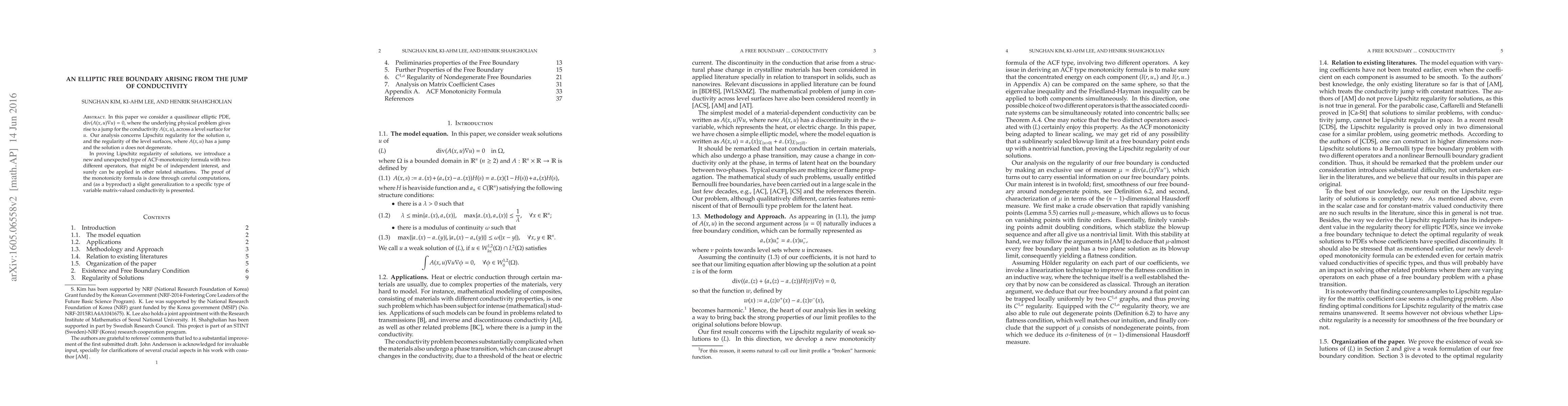 In this paper we consider a quasilinear elliptic PDE, $\text{div} (A(x,u) \nabla u) =0$, where the underlying physical problem gives rise to a jump for the conductivity $A(x,u)$, across a level surface for $u$. Our analysis concerns Lipschitz regularity for the solution $u$, and the regularity of the level surfaces, where $A(x,u)$ has a jump and the solution $u$ does not degenerate. In proving Lipschitz regularity of solutions, we introduce a new and unexpected type of ACF-monotonicity formula with two different operators, that might be of independent interest, and surely can be applied in other related situations. The proof of the monotonicity formula is done through careful computations, and (as a byproduct) a slight generalization to a specific type of variable matrix-valued conductivity is presented.