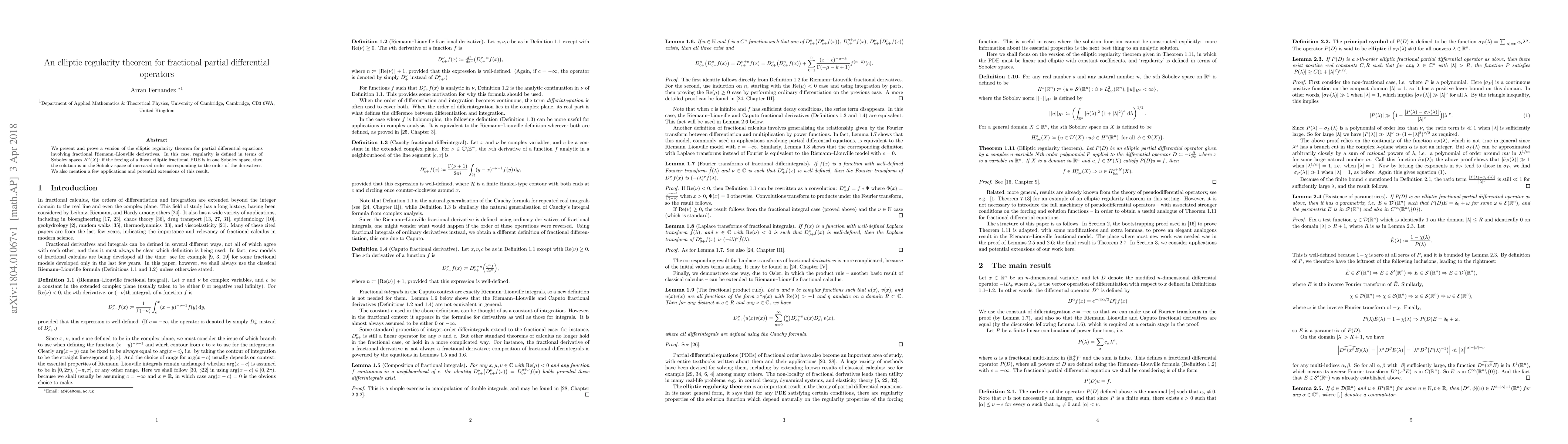 This paper proves an elliptic regularity theorem for fractional partial differential equations using fractional Riemann-Liouville derivatives, showing that solutions lie in higher-order Sobolev spaces when the forcing term is in a lower-order Sobolev space. Potential applications and extensions of this result are briefly discussed.