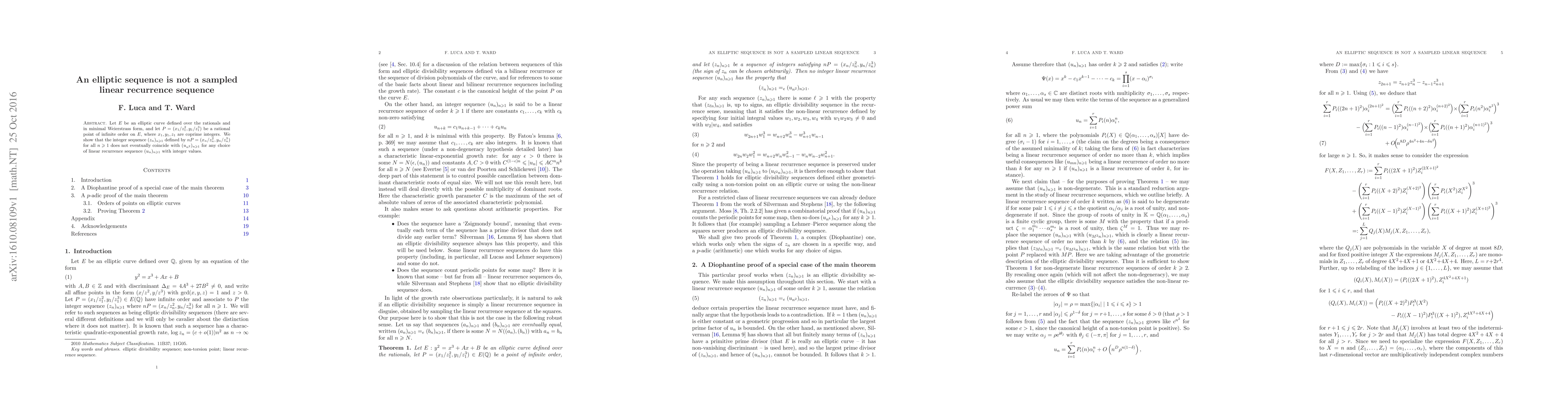 Let $E$ be an elliptic curve defined over the rationals and in minimal Weierstrass form, and let $P=(x_1/z_1^2,y_1/z_1^3)$ be a rational point of infinite order on $E$, where $x_1,y_1,z_1$ are coprime integers. We show that the integer sequence $(z_n)$ defined by $nP=(x_n/z_n^2,y_n/z_n^3)$ for all $n\ge 1$ does not eventually coincide with $(u_{n^2})$ for any choice of linear recurrence sequence $(u_n)$ with integer values.