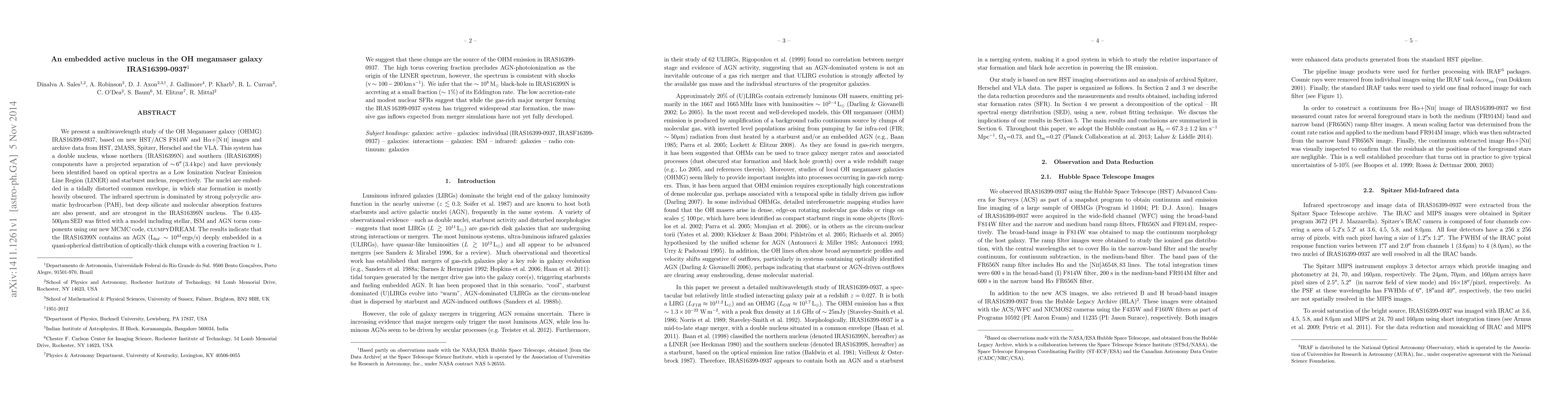 We present a multiwavelength study of the OH Megamaser galaxy (OHMG) IRAS16399-0937, based on new HST/ACS F814W and H$\alpha$+[NII] images and archive data from HST, 2MASS, Spitzer, Herschel and the VLA. This system has a double nucleus, whose northern (IRAS16399N) and southern (IRAS16399S) components have a projected separation of $\sim$ 6'' (3.4 kpc) and have previously been identified based on optical spectra as a Low Ionization Nuclear Emission Line Region (LINER) and starburst nucleus, respectively. The nuclei are embedded in a tidally distorted common envelope, in which star formation is mostly heavily obscured. The infrared spectrum is dominated by strong polycyclic aromatic hydrocarbon (PAH), but deep silicate and molecular absorption features are also present, and are strongest in the IRAS16399N nucleus. The 0.435 - 500$\mu$m SED was fitted with a model including stellar, ISM and AGN torus components using our new MCMC code, clumpyDREAM. The results indicate that the IRAS16399N contains an AGN (L$_{bol} \sim 10^{44}$ ergs/s) deeply embedded in a quasi-spherical distribution of optically-thick clumps with a covering fraction $\approx1$. We suggest that these clumps are the source of the OHM emission in IRAS16399-0937. The high torus covering fraction precludes AGN-photoionization as the origin of the LINER spectrum, however, the spectrum is consistent with shocks (v $\sim100-200$ km s$^{-1}$). We infer that the $\sim10^8$ M$_{\odot}$ black-hole in IRAS16399N is accreting at a small fraction ($\sim1$%) of its Eddington rate. The low accretion-rate and modest nuclear SFRs suggest that while the gas-rich major merger forming the IRAS16399-0937 system has triggered widespread star formation, the massive gas inflows expected from merger simulations have not yet fully developed.
