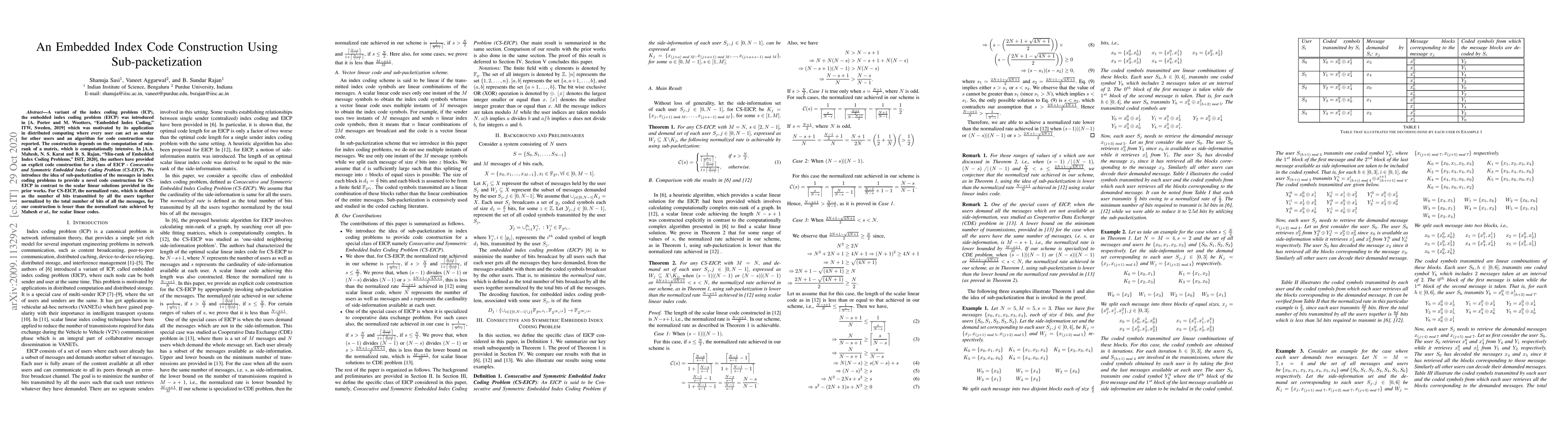 A variant of the index coding problem (ICP), the embedded index coding problem (EICP) was introduced in [A. Porter and M. Wootters, "Embedded index coding," ITW, Sweden, 2019] which was motivated by its application in distributed computing where every user can act as sender for other users and an algorithm for code construction was reported. The constructions depends on the computation of minrank of a matrix, which is computationally intensive. In [A. Mahesh, N. Sageer Karat and B. S. Rajan, "Min-rank of Embedded Index Coding Problems," ISIT, 2020], for EICP, a notion of side-information matrix was introduced and it was proved that the length of an optimal scalar linear index code is equal to the min-rank of the side-information matrix. The authors have provided an explicit code construction for a class of EICP - \textit{Consecutive and Symmetric Embedded Index Coding Problem (CS-EICP)}. We introduce the idea of sub-packetization of the messages in index coding problems to provide a novel code construction for CS-EICP in contrast to the scalar linear solutions provided in the prior works. For CS-EICP, the normalized rate, which is defined as the number of bits transmitted by all the users together normalized by the total number of bits of all the messages, for our construction is lesser than the normalized rate achieved by Mahesh et al.,for scalar linear codes.