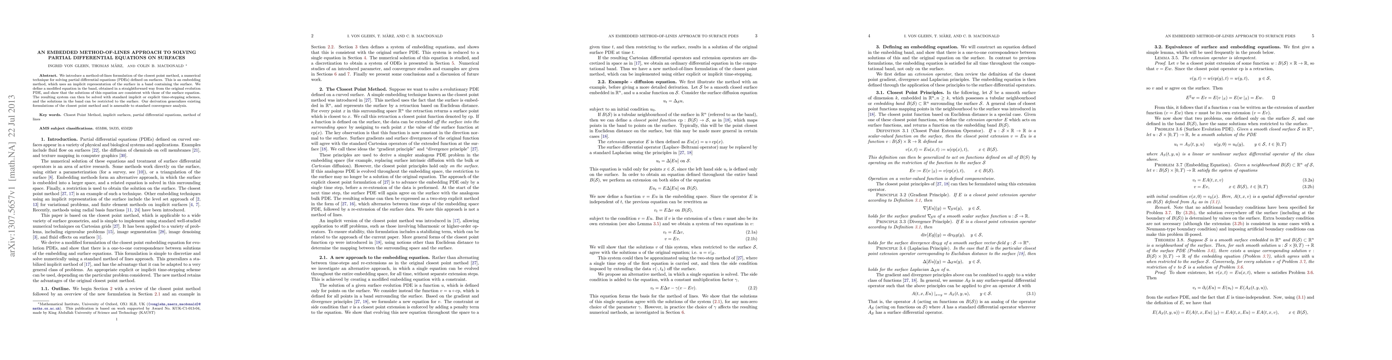 We introduce a method-of-lines formulation of the closest point method, a numerical technique for solving partial differential equations (PDEs) defined on surfaces. This is an embedding method, which uses an implicit representation of the surface in a band containing the surface. We define a modified equation in the band, obtained in a straightforward way from the original evolution PDE, and show that the solutions of this equation are consistent with those of the surface equation. The resulting system can then be solved with standard implicit or explicit time-stepping schemes, and the solutions in the band can be restricted to the surface. Our derivation generalizes existing formulations of the closest point method and is amenable to standard convergence analysis.