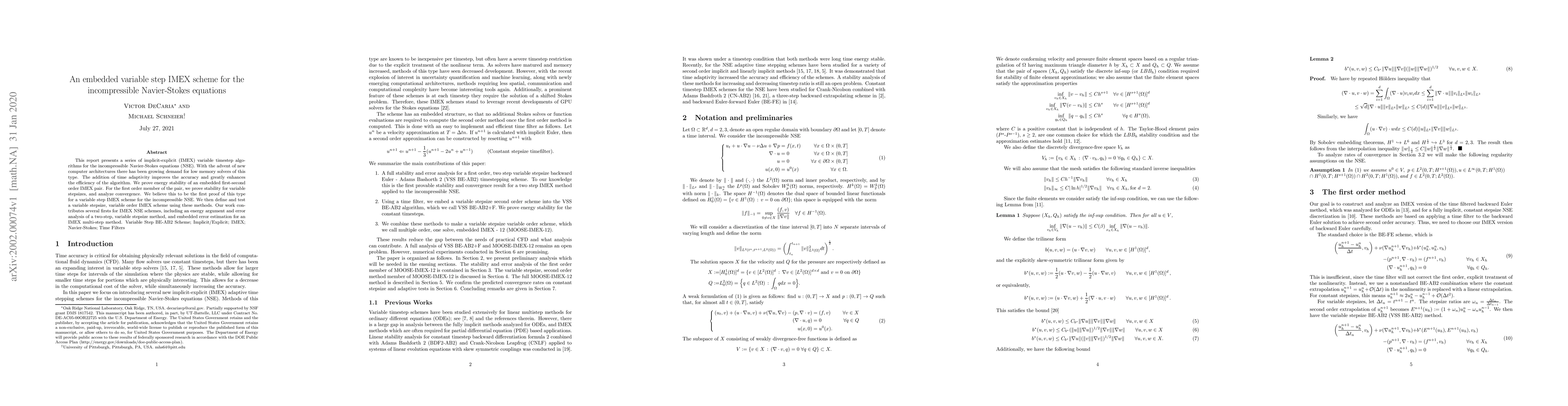 This report presents a series of implicit-explicit (IMEX) variable timestep algorithms for the incompressible Navier-Stokes equations (NSE). With the advent of new computer architectures there has been growing demand for low memory solvers of this type. The addition of time adaptivity improves the accuracy and greatly enhances the efficiency of the algorithm. We prove energy stability of an embedded first-second order IMEX pair. For the first order member of the pair, we prove stability for variable stepsizes, and analyze convergence. We believe this to be the first proof of this type for a variable step IMEX scheme for the incompressible NSE. We then define and test a variable stepsize, variable order IMEX scheme using these methods. Our work contributes several firsts for IMEX NSE schemes, including an energy argument and error analysis of a two-step, variable stepsize method, and embedded error estimation for an IMEX multi-step method.