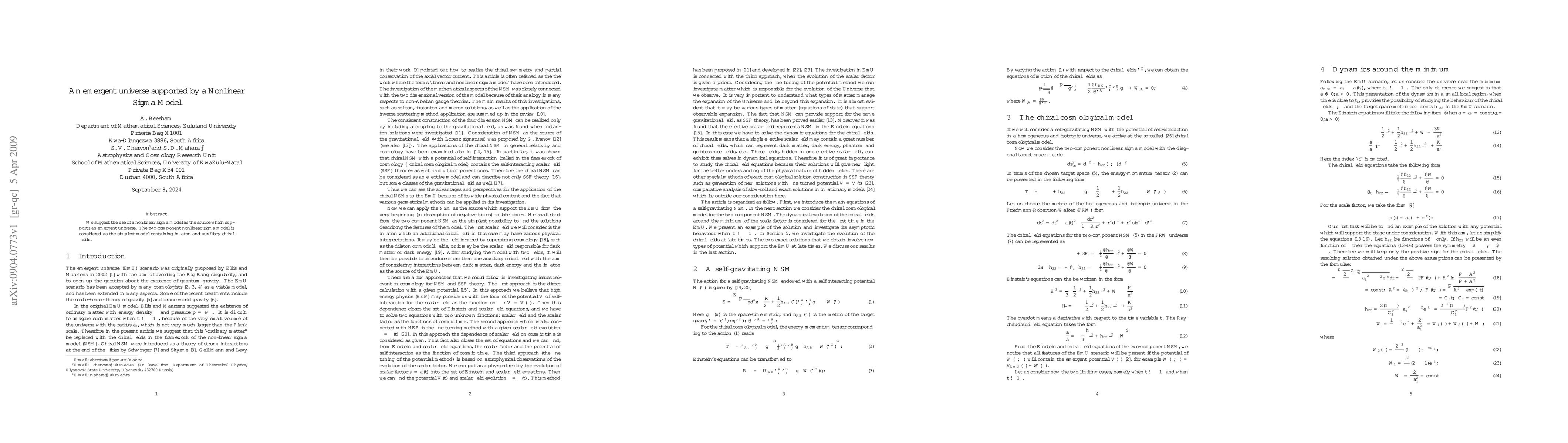 We suggest the use of a nonlinear sigma model as the source which supports an emergent universe. The two-component nonlinear sigma model is considered as the simplest model containing inflaton and auxiliary chiral fields.