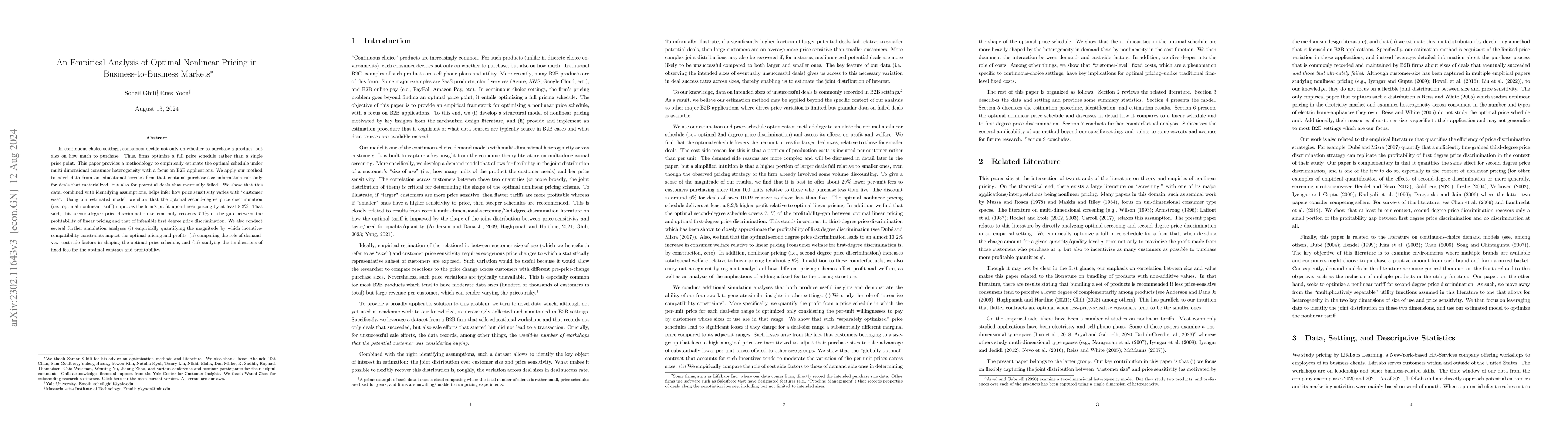 In continuous-choice settings, consumers decide not only on whether to purchase a product, but also on how much to purchase. Thus, firms optimize a full price schedule rather than a single price point. This paper provides a methodology to empirically estimate the optimal schedule under multi-dimensional consumer heterogeneity. We apply our method to novel data from an educational-services firm that contains purchase-size information not only for deals that materialized, but also for potential deals that eventually failed. We show that this data, combined with identifying assumptions, helps infer how price sensitivity varies with "customer size". Using our estimated model, we show that the optimal second-degree price discrimination (i.e., optimal nonlinear tariff) improves the firm's profit upon linear pricing by at least 5.5%. That said, this second-degree price discrimination scheme only recovers 5.1% of the gap between the profitability of linear pricing and that of infeasible first degree price discrimination. We also conduct several further counterfactual analyses (i) empirically quantifying the magnitude by which incentive-compatibility constraints impact the optimal pricing and profits, (ii) comparing the role of demand- v.s. cost-side factors in shaping the optimal price schedule, and (iii) studying the implications of fixed fees for the optimal contract and profitability.