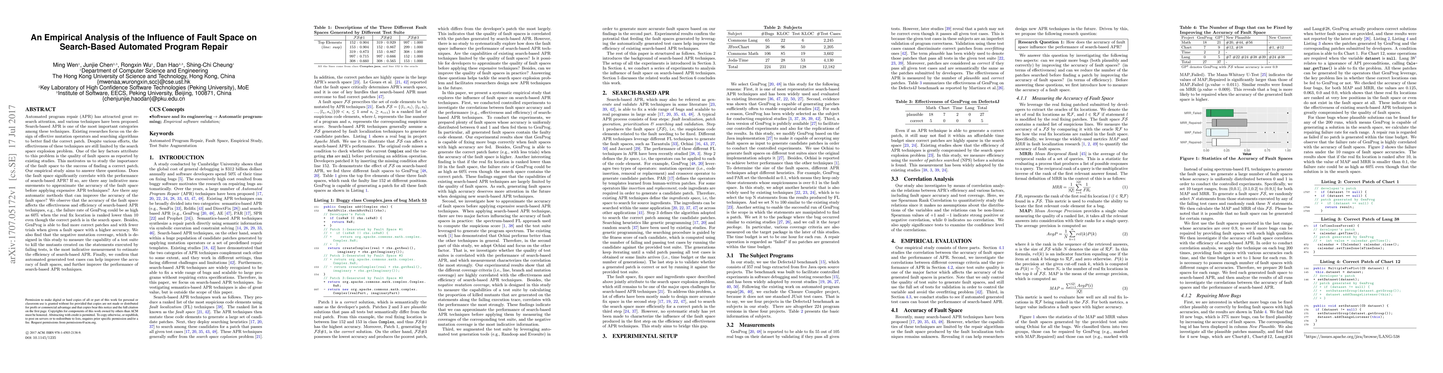Automated program repair (APR) has attracted great research attention, and various techniques have been proposed. Search-based APR is one of the most important categories among these techniques. Existing researches focus on the design of effective mutation operators and searching algorithms to better find the correct patch. Despite various efforts, the effectiveness of these techniques are still limited by the search space explosion problem. One of the key factors attribute to this problem is the quality of fault spaces as reported by existing studies. This motivates us to study the importance of the fault space to the success of finding a correct patch. Our empirical study aims to answer three questions. Does the fault space significantly correlate with the performance of search-based APR? If so, are there any indicative measurements to approximate the accuracy of the fault space before applying expensive APR techniques? Are there any automatic methods that can improve the accuracy of the fault space? We observe that the accuracy of the fault space affects the effectiveness and efficiency of search-based APR techniques, e.g., the failure rate of GenProg could be as high as $60\%$ when the real fix location is ranked lower than 10 even though the correct patch is in the search space. Besides, GenProg is able to find more correct patches and with fewer trials when given a fault space with a higher accuracy. We also find that the negative mutation coverage, which is designed in this study to measure the capability of a test suite to kill the mutants created on the statements executed by failing tests, is the most indicative measurement to estimate the efficiency of search-based APR. Finally, we confirm that automated generated test cases can help improve the accuracy of fault spaces, and further improve the performance of search-based APR techniques.