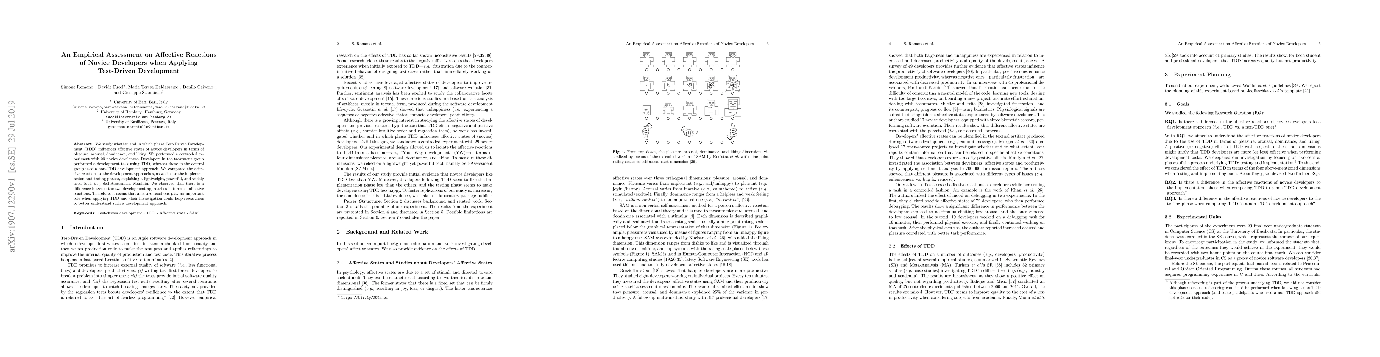 A study of 29 novice developers found that Test-Driven Development (TDD) had a positive effect on their affective states, increasing pleasure and liking while reducing arousal.