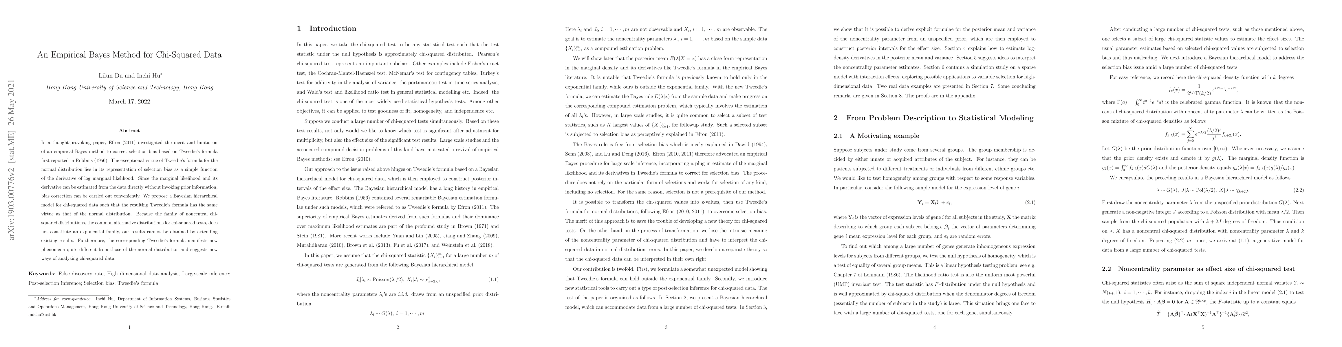 This paper proposes an empirical Bayes method for correcting selection bias in chi-squared data using a Bayesian hierarchical model, extending Tweedie's formula to non-normal distributions and revealing new analytical insights for chi-squared data analysis.