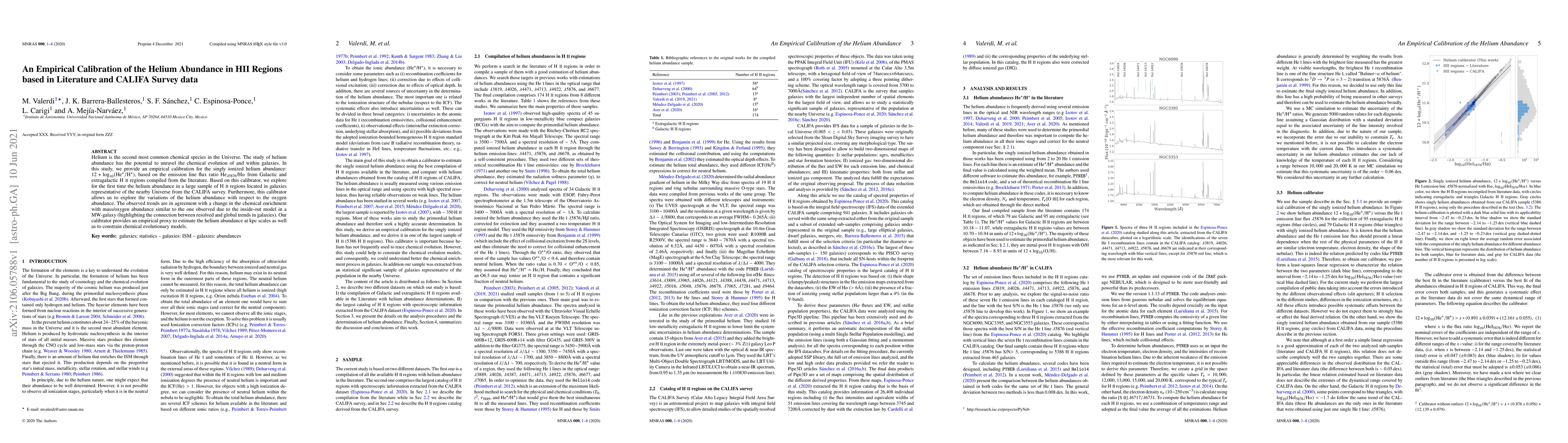 This study empirically calibrates the singly ionized helium abundance in HII regions using the He$_{\lambda5876}$/H$\alpha$ emission line ratio, derived from both literature and CALIFA survey data. The calibrated abundance trends align with the inside-out chemical enrichment model, linking resolved and global galaxy evolution trends.