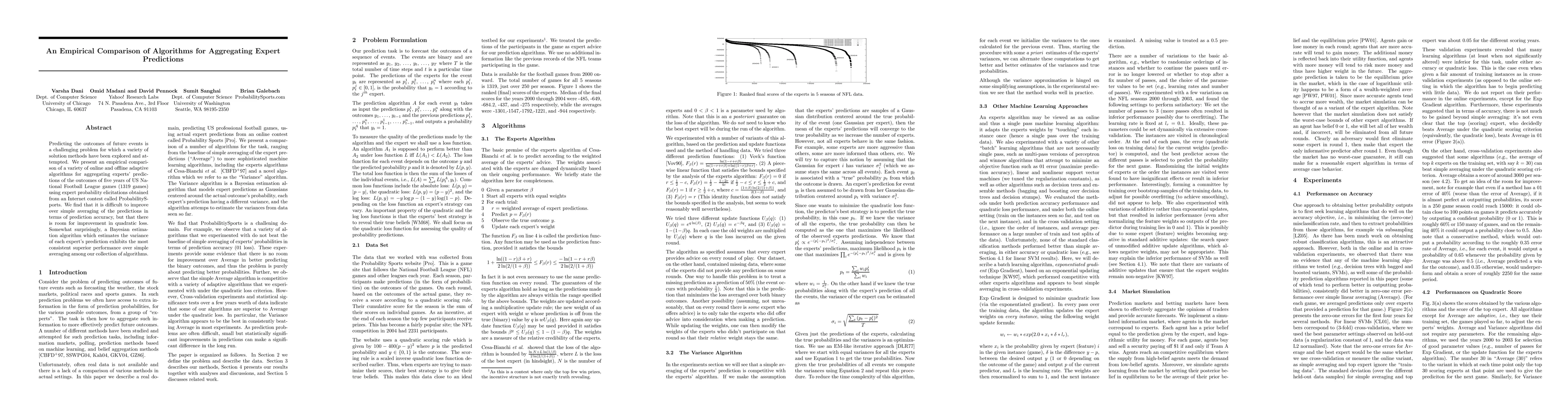 A study compared various algorithms for aggregating expert predictions, finding that a simple averaging approach is often sufficient in terms of prediction accuracy, but Bayesian estimation shows consistent superior performance in quadratic loss scenarios.