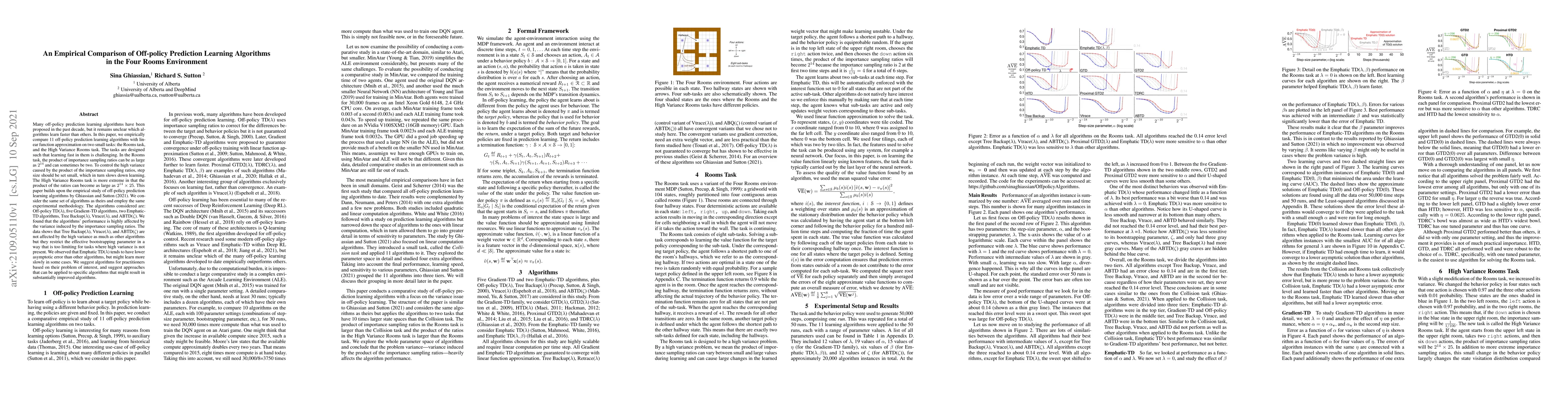Many off-policy prediction learning algorithms have been proposed in the past decade, but it remains unclear which algorithms learn faster than others. We empirically compare 11 off-policy prediction learning algorithms with linear function approximation on two small tasks: the Rooms task, and the High Variance Rooms task. The tasks are designed such that learning fast in them is challenging. In the Rooms task, the product of importance sampling ratios can be as large as $2^{14}$ and can sometimes be two. To control the high variance caused by the product of the importance sampling ratios, step size should be set small, which in turn slows down learning. The High Variance Rooms task is more extreme in that the product of the ratios can become as large as $2^{14}\times 25$. This paper builds upon the empirical study of off-policy prediction learning algorithms by Ghiassian and Sutton (2021). We consider the same set of algorithms as theirs and employ the same experimental methodology. The algorithms considered are: Off-policy TD($\lambda$), five Gradient-TD algorithms, two Emphatic-TD algorithms, Tree Backup($\lambda$), Vtrace($\lambda$), and ABTD($\zeta$). We found that the algorithms' performance is highly affected by the variance induced by the importance sampling ratios. The data shows that Tree Backup($\lambda$), Vtrace($\lambda$), and ABTD($\zeta$) are not affected by the high variance as much as other algorithms but they restrict the effective bootstrapping parameter in a way that is too limiting for tasks where high variance is not present. We observed that Emphatic TD($\lambda$) tends to have lower asymptotic error than other algorithms, but might learn more slowly in some cases. We suggest algorithms for practitioners based on their problem of interest, and suggest approaches that can be applied to specific algorithms that might result in substantially improved algorithms.