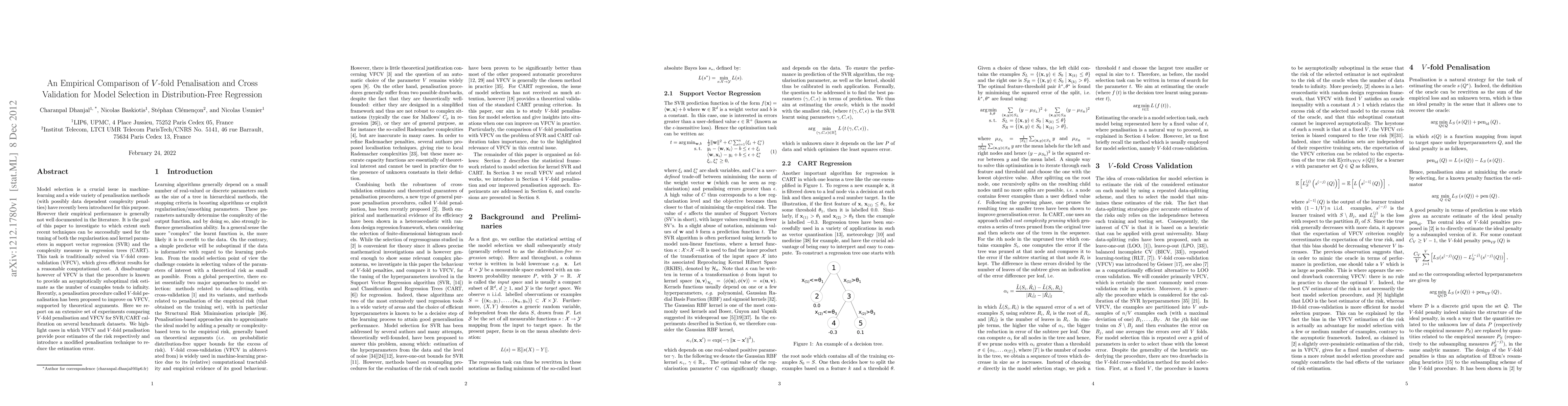 Model selection is a crucial issue in machine-learning and a wide variety of penalisation methods (with possibly data dependent complexity penalties) have recently been introduced for this purpose. However their empirical performance is generally not well documented in the literature. It is the goal of this paper to investigate to which extent such recent techniques can be successfully used for the tuning of both the regularisation and kernel parameters in support vector regression (SVR) and the complexity measure in regression trees (CART). This task is traditionally solved via V-fold cross-validation (VFCV), which gives efficient results for a reasonable computational cost. A disadvantage however of VFCV is that the procedure is known to provide an asymptotically suboptimal risk estimate as the number of examples tends to infinity. Recently, a penalisation procedure called V-fold penalisation has been proposed to improve on VFCV, supported by theoretical arguments. Here we report on an extensive set of experiments comparing V-fold penalisation and VFCV for SVR/CART calibration on several benchmark datasets. We highlight cases in which VFCV and V-fold penalisation provide poor estimates of the risk respectively and introduce a modified penalisation technique to reduce the estimation error.