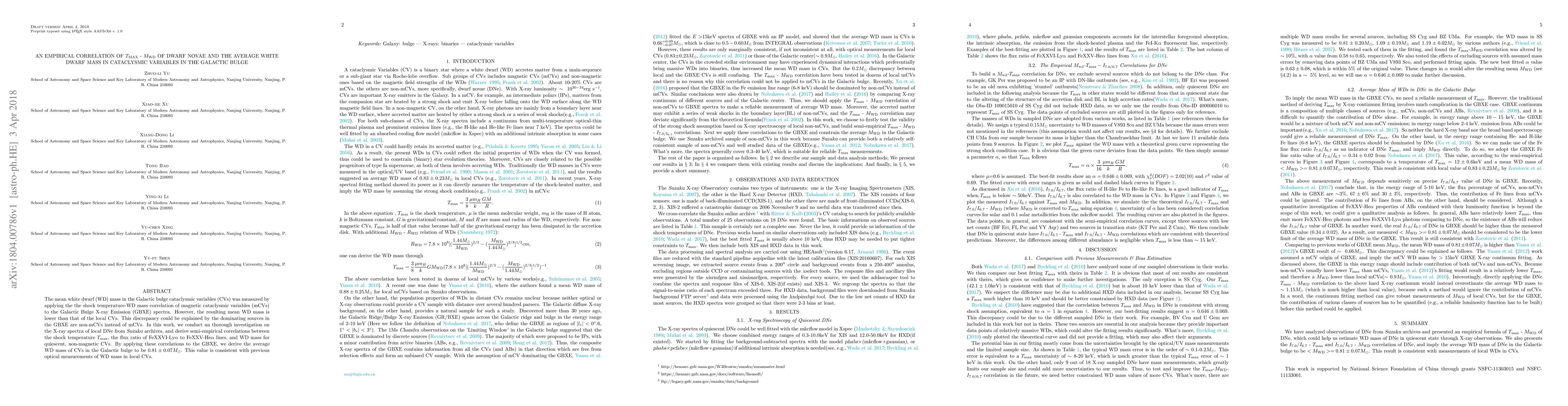 The mean white dwarf (WD) mass in the Galactic bulge cataclysmic variables (CVs) was measured by applying the the shock temperature-WD mass correlation of magnetic cataclysmic variables (mCVs) to the Galactic Bulge X-ray Emission (GBXE) spectra. However, the resulting mean WD mass is lower than that of the local CVs. This discrepancy could be explained by the dominating sources in the GBXE are non-mCVs instead of mCVs. In this work, we conduct an thorough investigation on the X-ray spectra of local DNe from \suzaku\ archives, and derive semi-empirical correlations between the shock temperature $T_{\rm max}$, the flux ratio of \fec\ to \feb\ lines, and WD mass for quiescent, non-magnetic CVs. By applying these correlations to the GBXE, we derive the average WD mass of CVs in the Galactic bulge to be $0.81\pm 0.07M_\odot$. This value is consistent with previous optical measurements of WD mass in local CVs.