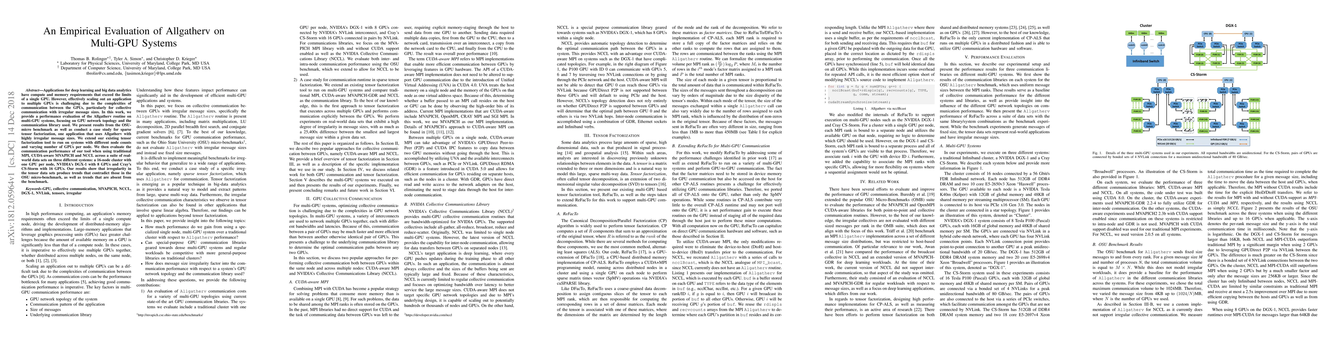 Researchers evaluate the performance of Allgatherv on multi-GPU systems, finding that irregular data sizes produce different trends than traditional benchmarks, with varying communication performance across different systems and libraries.