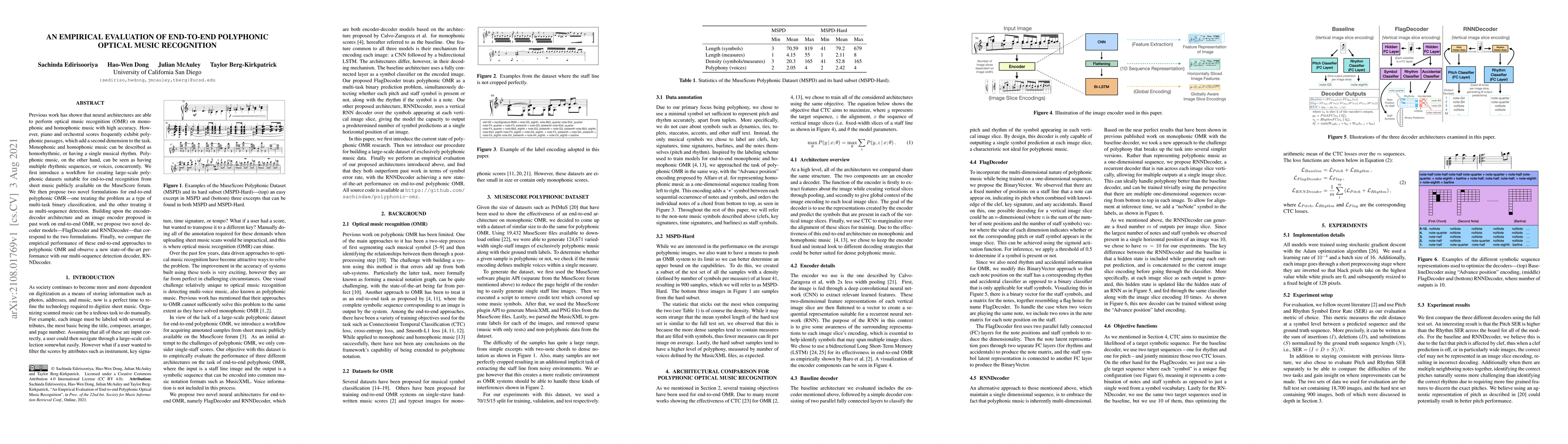 This paper introduces a workflow for generating large-scale polyphonic datasets and proposes two novel neural network formulations for end-to-end polyphonic optical music recognition (OMR). The study achieves state-of-the-art results using a multi-sequence detection decoder, RNNDecoder.