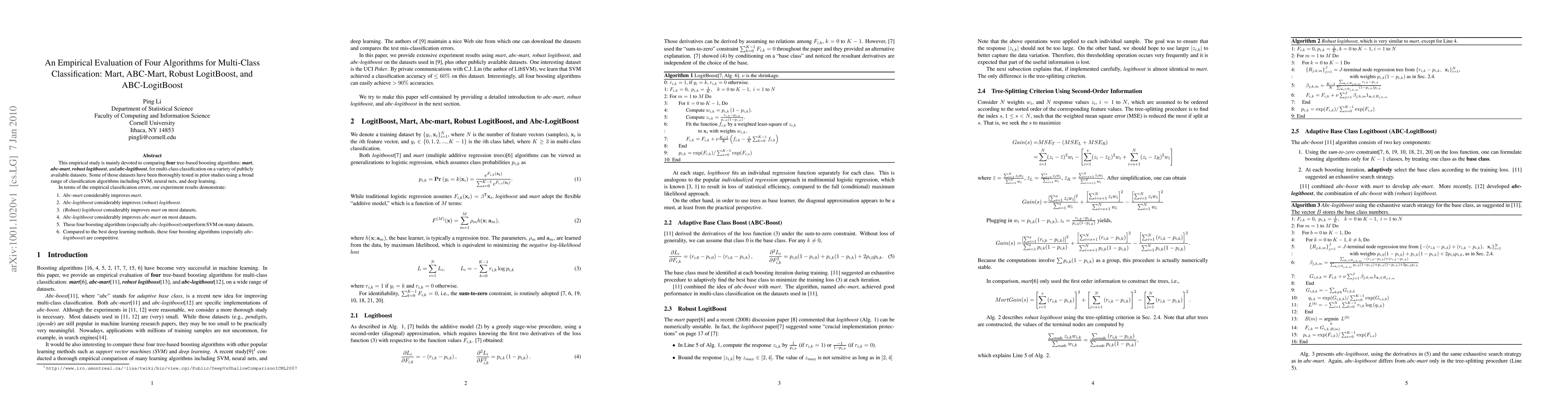 This study compares four tree-based boosting algorithms for multi-class classification, finding that abc-logitboost significantly outperforms other algorithms, including robust logitboost, abc-mart, and mart, and is competitive with the best deep learning methods on various datasets.
