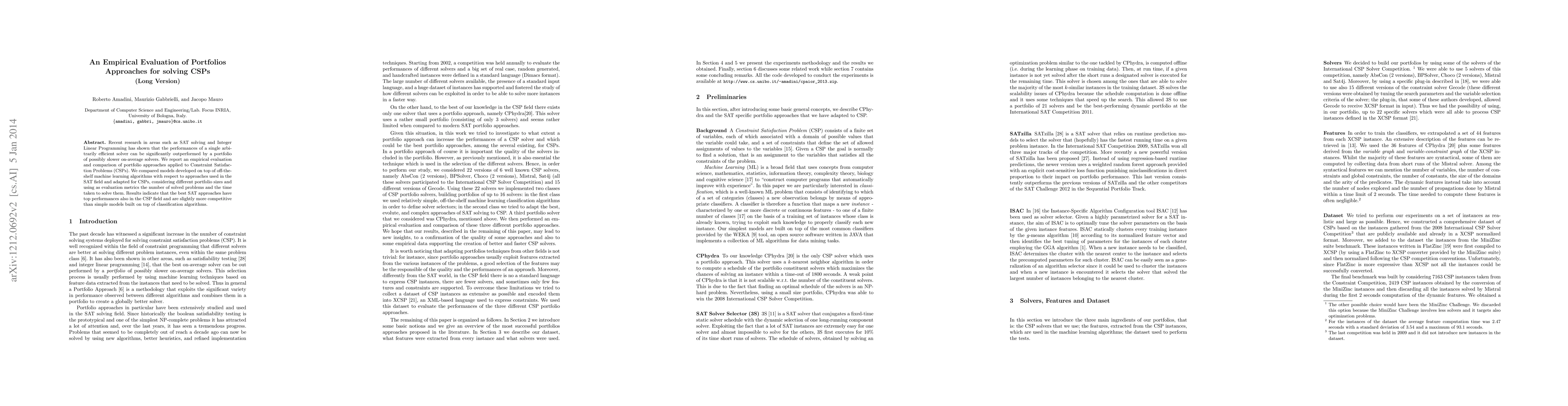 A study evaluated portfolio approaches for solving Constraint Satisfaction Problems (CSPs), finding that combining multiple solvers can improve performance and outperform simple models.