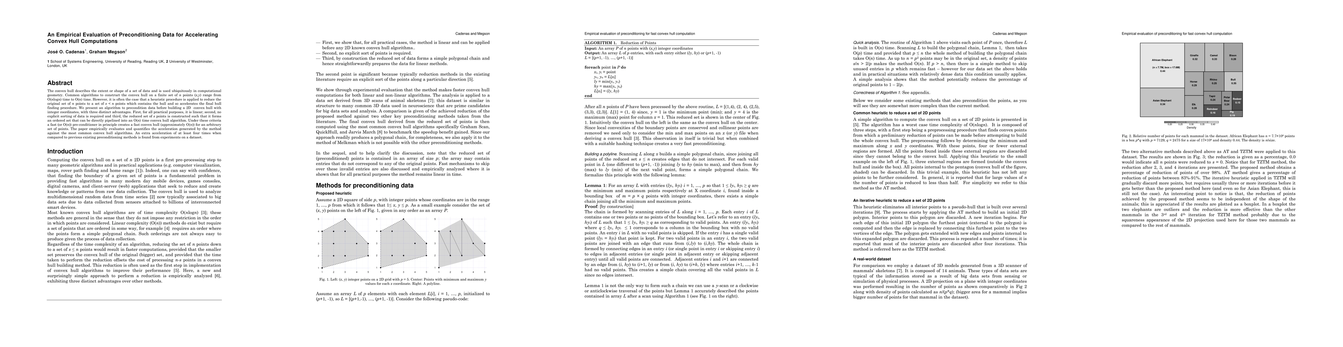 This paper proposes a linear preconditioning algorithm for accelerating 2D convex hull computations, requiring no explicit sorting and directly integrating with O(n) time hull algorithms. Empirically, it demonstrates at least four times the acceleration compared to existing methods.