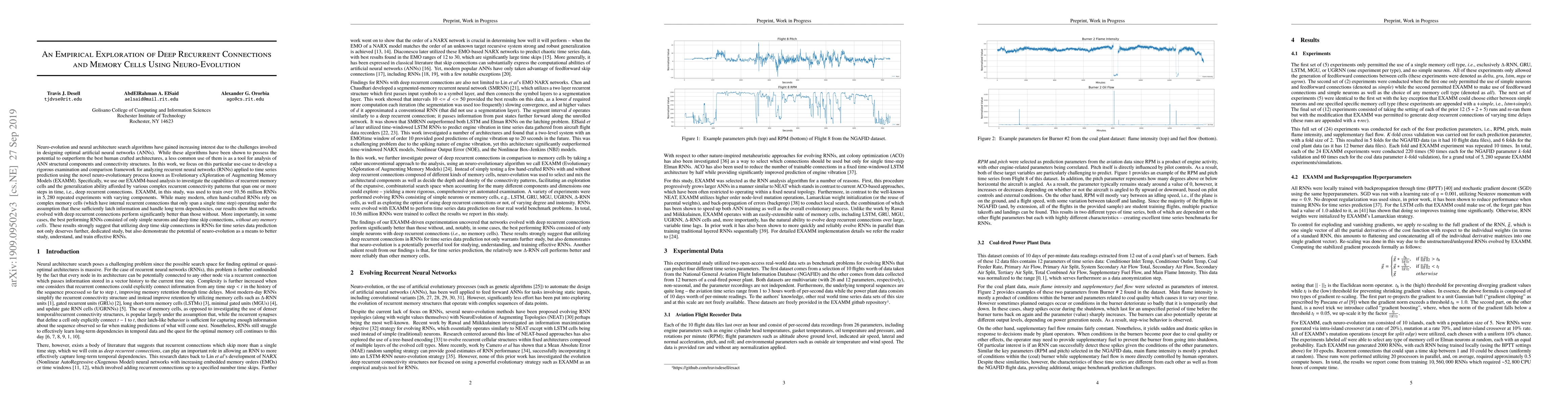 Neuro-evolution and neural architecture search algorithms have gained increasing interest due to the challenges involved in designing optimal artificial neural networks (ANNs). While these algorithms have been shown to possess the potential to outperform the best human crafted architectures, a less common use of them is as a tool for analysis of ANN structural components and connectivity structures. In this work, we focus on this particular use-case to develop a rigorous examination and comparison framework for analyzing recurrent neural networks (RNNs) applied to time series prediction using the novel neuro-evolutionary process known as Evolutionary eXploration of Augmenting Memory Models (EXAMM). Specifically, we use our EXAMM-based analysis to investigate the capabilities of recurrent memory cells and the generalization ability afforded by various complex recurrent connectivity patterns that span one or more steps in time, i.e., deep recurrent connections. EXAMM, in this study, was used to train over 10.56 million RNNs in 5,280 repeated experiments with varying components. While many modern, often hand-crafted RNNs rely on complex memory cells (which have internal recurrent connections that only span a single time step) operating under the assumption that these sufficiently latch information and handle long term dependencies, our results show that networks evolved with deep recurrent connections perform significantly better than those without. More importantly, in some cases, the best performing RNNs consisted of only simple neurons and deep time skip connections, without any memory cells. These results strongly suggest that utilizing deep time skip connections in RNNs for time series data prediction not only deserves further, dedicated study, but also demonstrate the potential of neuro-evolution as a means to better study, understand, and train effective RNNs.