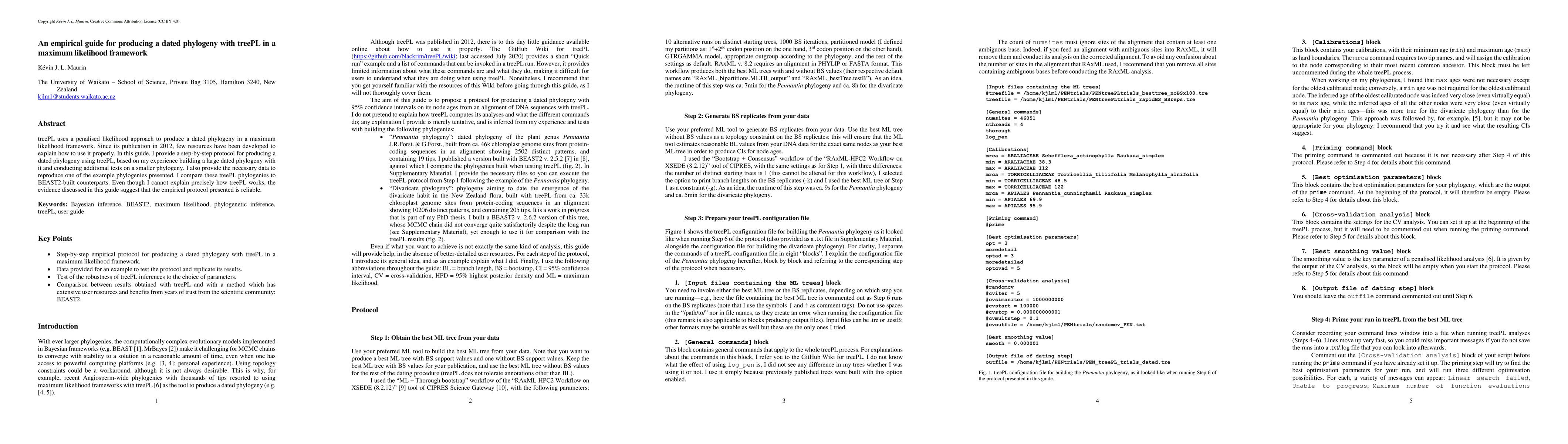 treePL uses a penalised likelihood approach to produce a dated phylogeny in a maximum likelihood framework. Since its publication in 2012, few resources have been developed to explain how to use it properly. In this guide, I provide a step-by-step protocol for producing a dated phylogeny using treePL, based on my experience building a large dated phylogeny with it and conducting additional tests on a smaller phylogeny. I also provide the necessary data to reproduce one of the example phylogenies presented. I compare these treePL phylogenies to BEAST2-built counterparts. Even though I cannot explain precisely how treePL works, the evidence discussed in this guide suggest that the empirical protocol presented is reliable.