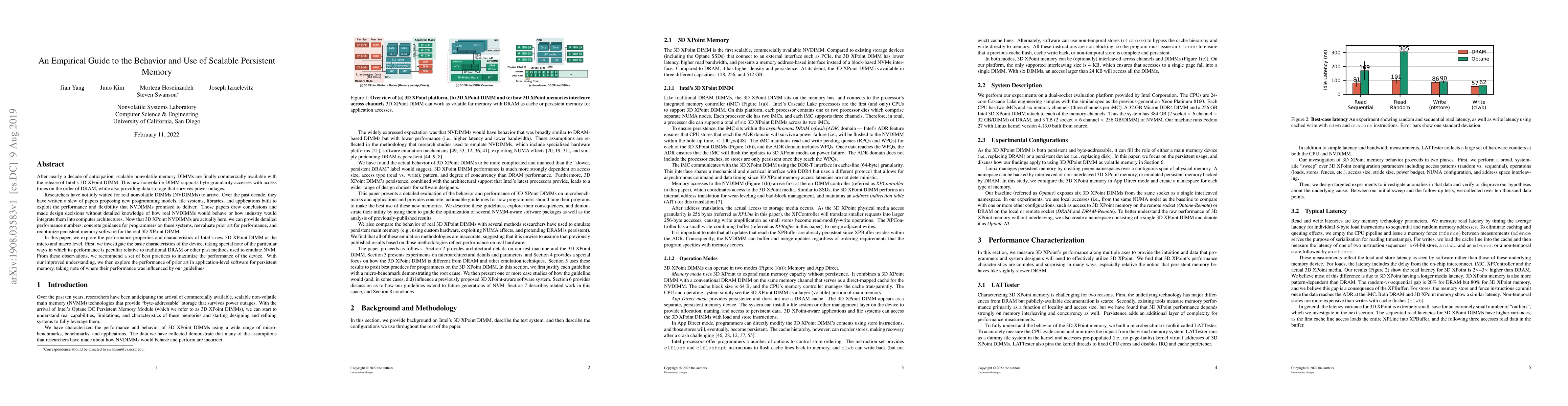 After nearly a decade of anticipation, scalable nonvolatile memory DIMMs are finally commercially available with the release of Intel's 3D XPoint DIMM. This new nonvolatile DIMM supports byte-granularity accesses with access times on the order of DRAM, while also providing data storage that survives power outages. Researchers have not idly waited for real nonvolatile DIMMs (NVDIMMs) to arrive. Over the past decade, they have written a slew of papers proposing new programming models, file systems, libraries, and applications built to exploit the performance and flexibility that NVDIMMs promised to deliver. Those papers drew conclusions and made design decisions without detailed knowledge of how real NVDIMMs would behave or how industry would integrate them into computer architectures. Now that 3D XPoint NVDIMMs are actually here, we can provide detailed performance numbers, concrete guidance for programmers on these systems, reevaluate prior art for performance, and reoptimize persistent memory software for the real 3D XPoint DIMM. In this paper, we explore the performance properties and characteristics of Intel's new 3D XPoint DIMM at the micro and macro level. First, we investigate the basic characteristics of the device, taking special note of the particular ways in which its performance is peculiar relative to traditional DRAM or other past methods used to emulate NVM. From these observations, we recommend a set of best practices to maximize the performance of the device. With our improved understanding, we then explore the performance of prior art in application-level software for persistent memory, taking note of where their performance was influenced by our guidelines.