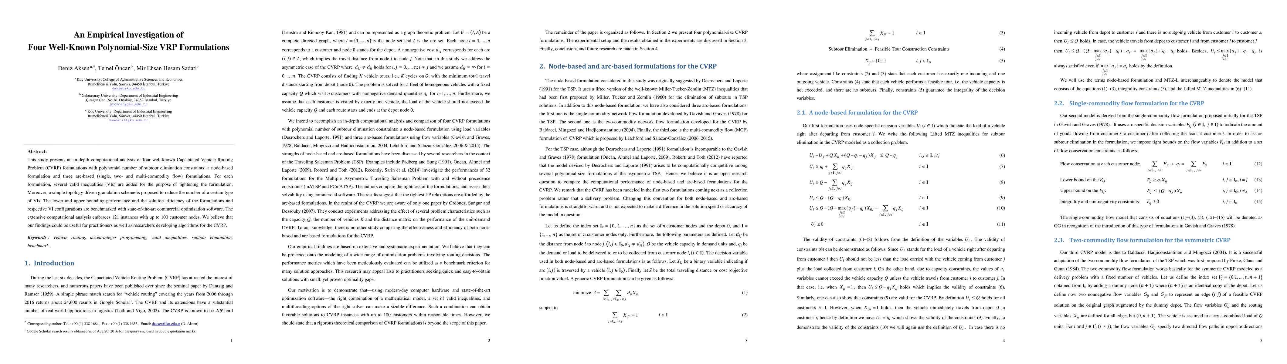 This study presents an in-depth computational analysis of four well-known Capacitated Vehicle Routing Problem (CVRP) formulations with polynomial number of subtour elimination constraints: a node-based formulation and three arc-based (single, two- and multi-commodity flow) formulations. For each formulation, several valid inequalities (VIs) are added for the purpose of tightening the formulation. Moreover, a simple topology-driven granulation scheme is proposed to reduce the number of a certain type of VIs. The lower and upper bounding performance and the solution efficiency of the formulations and respective VI configurations are benchmarked with state-of-the-art commercial optimization software. The extensive computational analysis embraces 121 instances with up to 100 customer nodes. We believe that our findings could be useful for practitioners as well as researchers developing algorithms for the CVRP.