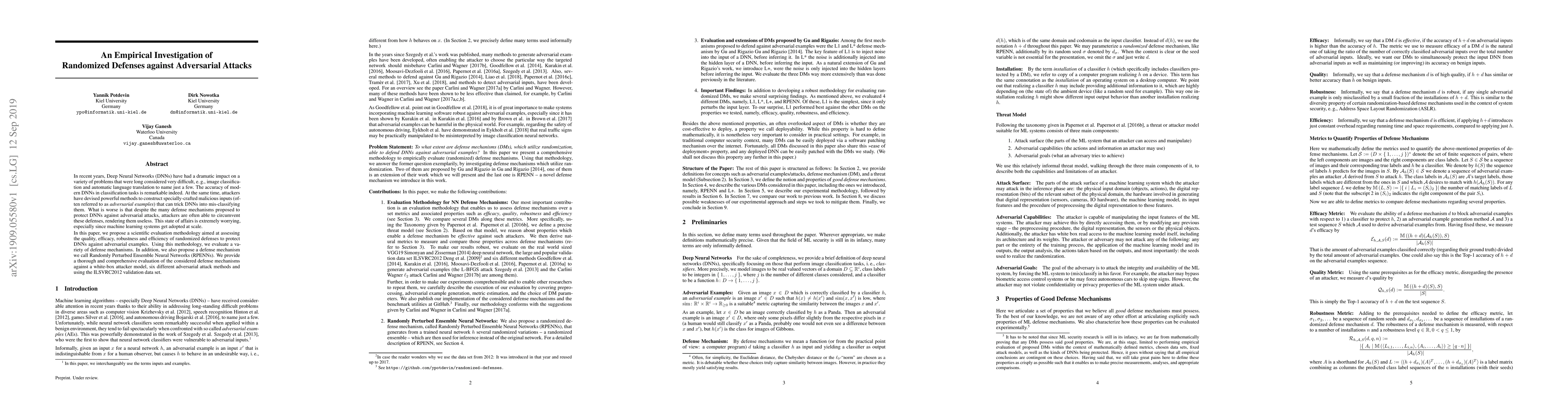 This paper proposes a scientific evaluation methodology to assess randomized defenses against adversarial attacks on Deep Neural Networks. The authors evaluate various defense mechanisms and introduce a new defense called Randomly Perturbed Ensemble Neural Networks (RPENNs), providing comprehensive results against multiple attack methods and datasets.