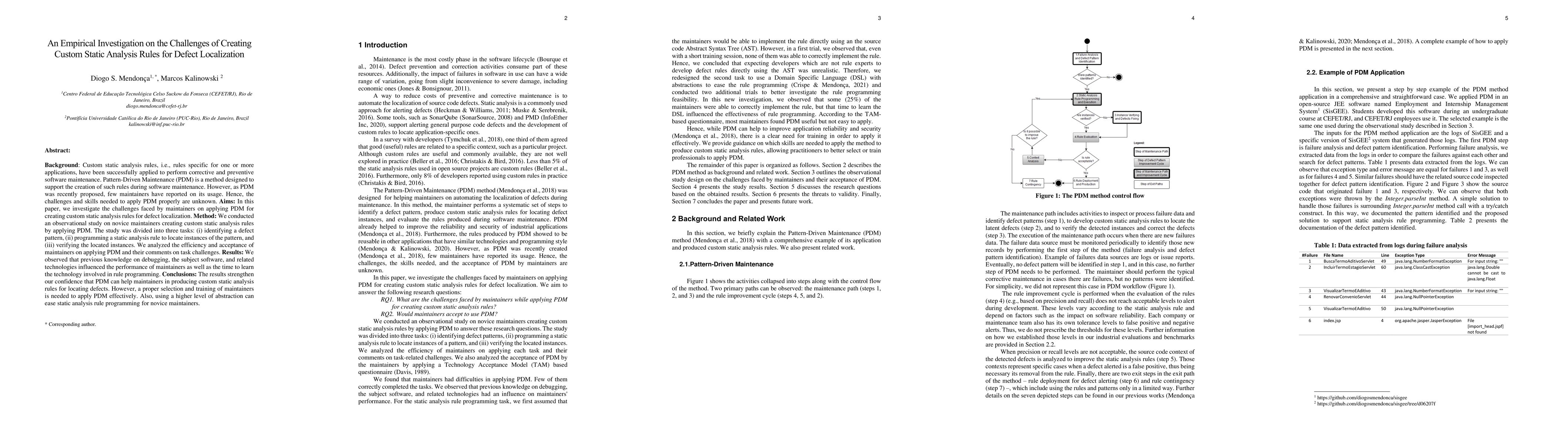 Background: Custom static analysis rules, i.e., rules specific for one or more applications, have been successfully applied to perform corrective and preventive software maintenance. Pattern-Driven Maintenance (PDM) is a method designed to support the creation of such rules during software maintenance. However, as PDM was recently proposed, few maintainers have reported on its usage. Hence, the challenges and skills needed to apply PDM properly are unknown. Aims: In this paper, we investigate the challenges faced by maintainers on applying PDM for creating custom static analysis rules for defect localization. Method: We conducted an observational study on novice maintainers creating custom static analysis rules by applying PDM. The study was divided into three tasks: (i) identifying a defect pattern, (ii) programming a static analysis rule to locate instances of the pattern, and (iii) verifying the located instances. We analyzed the efficiency and acceptance of maintainers on applying PDM and their comments on task challenges. Results: We observed that previous knowledge on debugging, the subject software, and related technologies influenced the performance of maintainers as well as the time to learn the technology involved in rule programming. Conclusions: The results strengthen our confidence that PDM can help maintainers in producing custom static analysis rules for locating defects. However, a proper selection and training of maintainers is needed to apply PDM effectively. Also, using a higher level of abstraction can ease static analysis rule programming for novice maintainers.