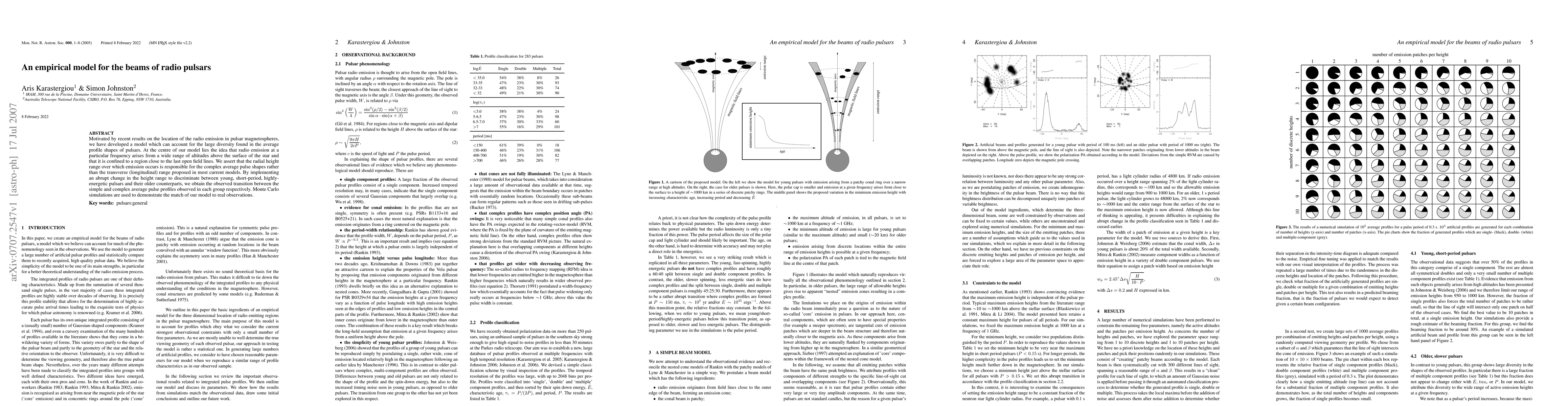 Motivated by recent results on the location of the radio emission in pulsar magnetospheres, we have developed a model which can account for the large diversity found in the average profile shapes of pulsars. At the centre of our model lies the idea that radio emission at a particular frequency arises from a wide range of altitudes above the surface of the star and that it is confined to a region close to the last open field lines. We assert that the radial height range over which emission occurs is responsible for the complex average pulse shapes rather than the transverse (longitudinal) range proposed in most current models. By implementing an abrupt change in the height range to discriminate between young, short-period, highly-energetic pulsars and their older counterparts, we obtain the observed transition between the simple and complex average pulse profiles observed in each group respectively. Monte Carlo simulations are used to demonstrate the match of our model to real observations.