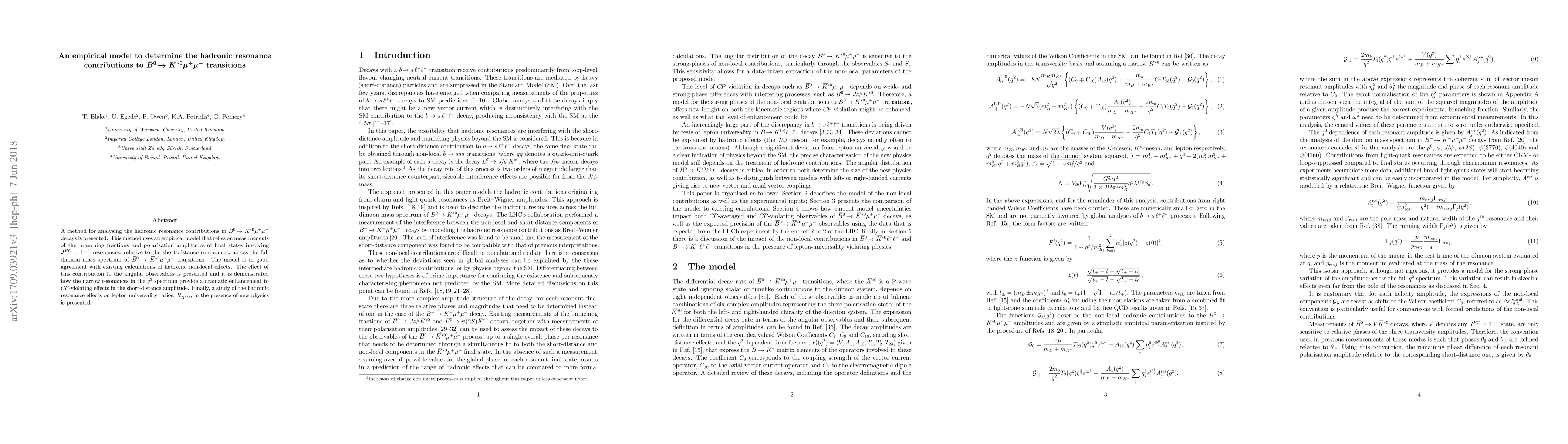 A method for analysing the hadronic resonance contributions in $\bar{B}^{0} \rightarrow \bar{K}^{*0}\mu^{+}\mu^{-}$ decays is presented. This method uses an empirical model that relies on measurements of the branching fractions and polarisation amplitudes of final states involving $J^{PC}=1^{--}$ resonances, relative to the short-distance component, across the full dimuon mass spectrum of $\bar{B}^{0} \rightarrow \bar{K}^{*0}\mu^{+}\mu^{-}$ transitions. The model is in good agreement with existing calculations of hadronic non-local effects. The effect of this contribution to the angular observables is presented and it is demonstrated how the narrow resonances in the $q^{2}$ spectrum provide a dramatic enhancement to $CP$-violating effects in the short-distance amplitude. Finally, a study of the hadronic resonance effects on lepton universality ratios, $R_{K^{(*)}}$, in the presence of new physics is presented.