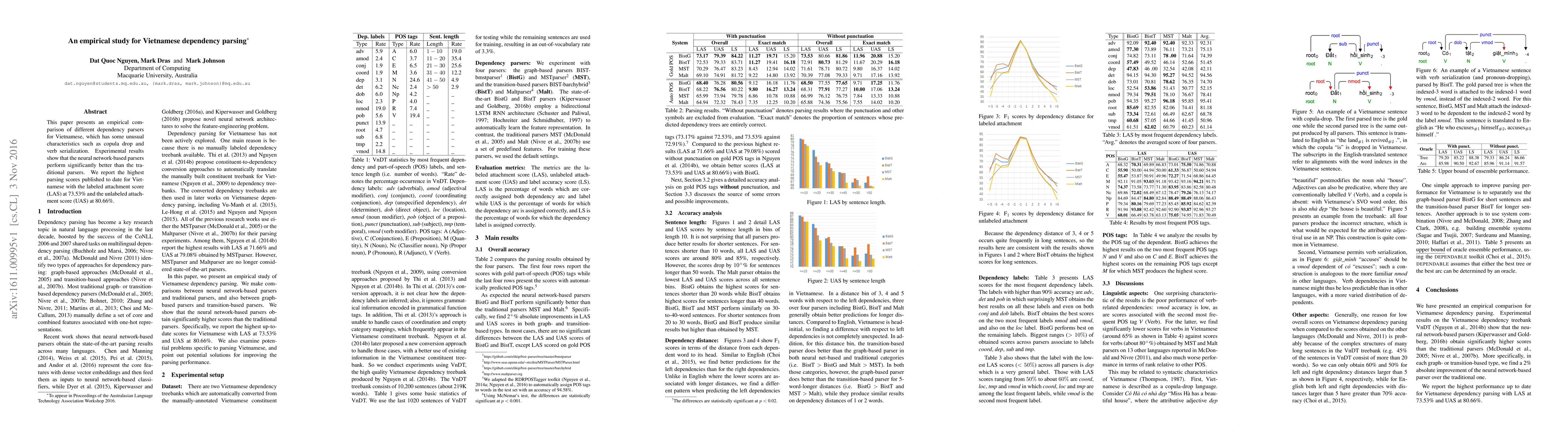This study compares various dependency parsers for Vietnamese, revealing that neural network-based parsers outperform traditional ones, achieving a LAS of 73.53% and a UAS of 80.66%, the highest reported scores to date.
