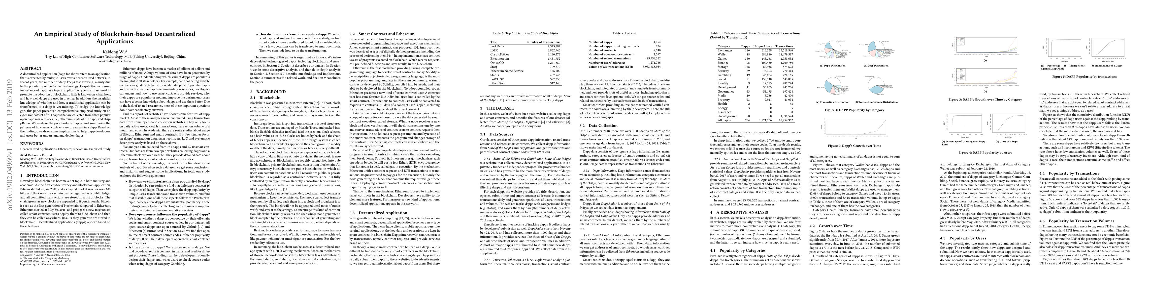 This paper conducts an empirical study on 734 decentralized applications (dapps) to analyze their popularity and smart contract organization patterns. The findings provide insights for developers and users to better understand and deploy dapps, addressing gaps in existing knowledge on dapp usage and transformation.