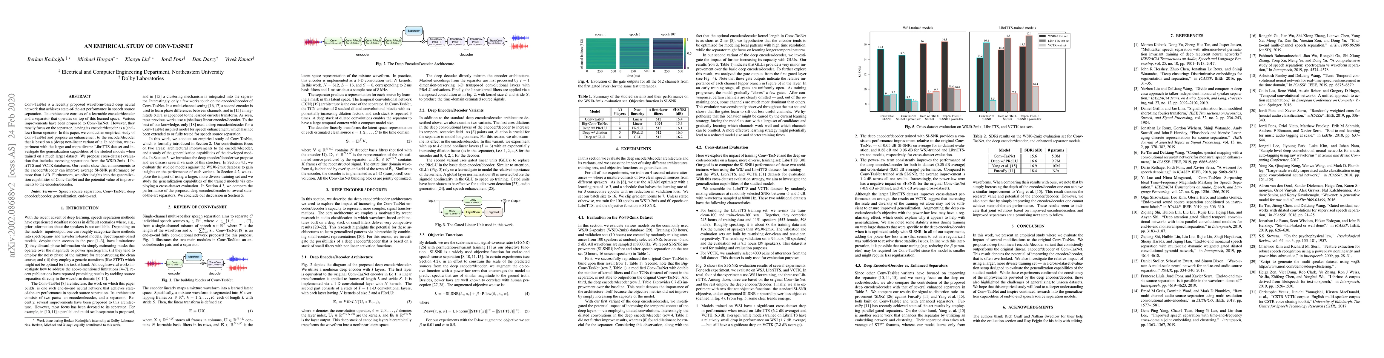 This paper empirically studies Conv-TasNet, enhancing its encoder/decoder with a deep non-linear variant, and finds improvements in average SI-SNR performance by over 1 dB. It also investigates the model's generalization across different datasets, providing insights into its effectiveness.