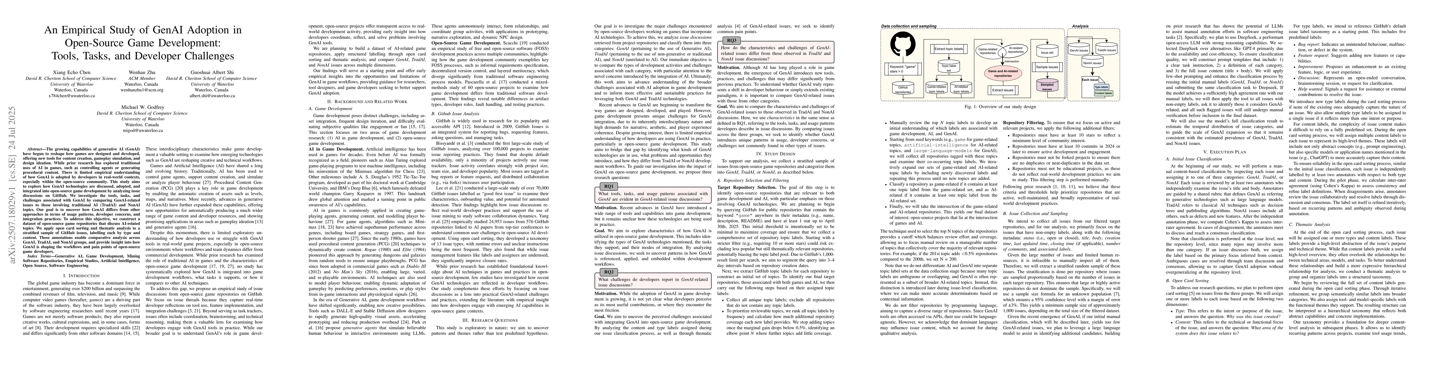 The study introduces a structured method for categorizing and analyzing GenAI-related issues in open-source game development, providing a taxonomy for understanding GenAI tools, tasks, and challenges.