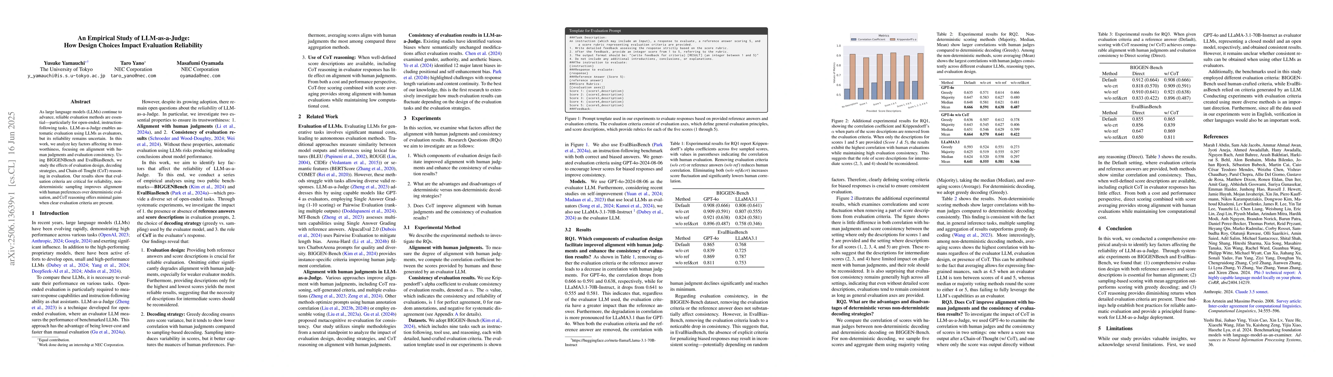 As large language models (LLMs) continue to advance, reliable evaluation methods are essential particularly for open-ended, instruction-following tasks. LLM-as-a-Judge enables automatic evaluation using LLMs as evaluators, but its reliability remains uncertain. In this work, we analyze key factors affecting its trustworthiness, focusing on alignment with human judgments and evaluation consistency. Using BIGGENBench and EvalBiasBench, we study the effects of evaluation design, decoding strategies, and Chain-of-Tought (CoT) reasoning in evaluation. Our results show that evaluation criteria are critical for reliability, non-deterministic sampling improves alignment with human preferences over deterministic evaluation, and CoT reasoning offers minimal gains when clear evaluation criteria are present.