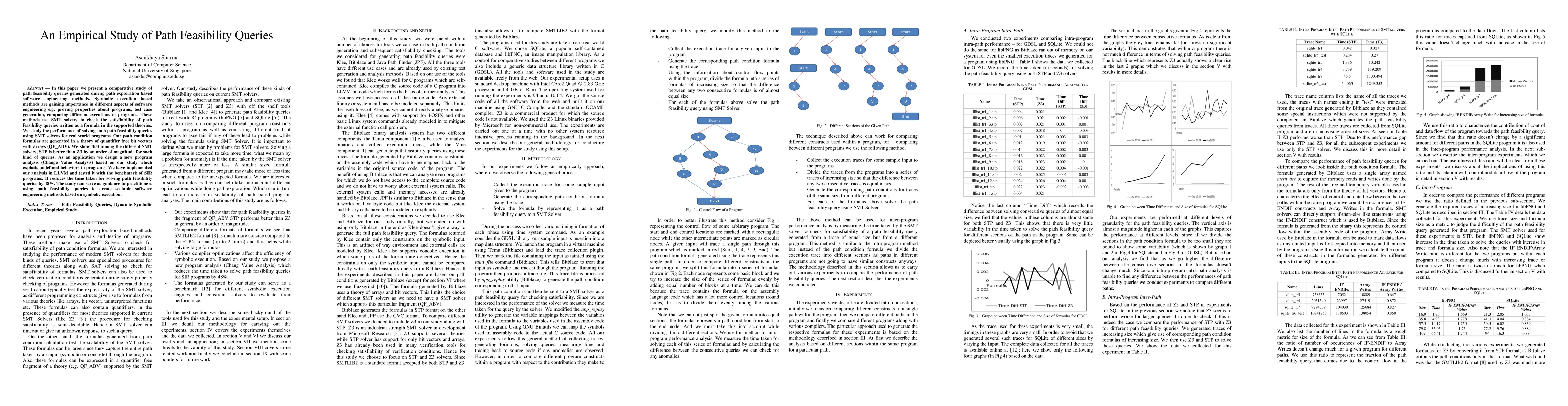 A study compares the performance of solving path feasibility queries using SMT solvers for real-world programs, finding that STP outperforms Z3 by an order of magnitude, and a new analysis reduces query solving time by 48%.