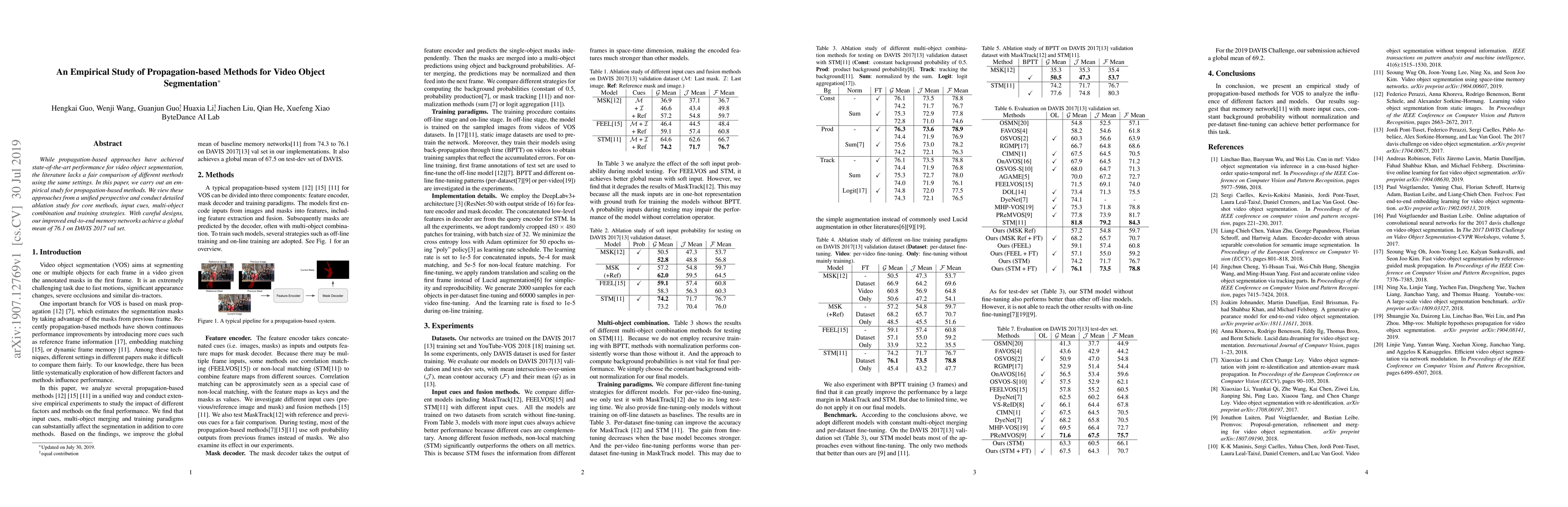 While propagation-based approaches have achieved state-of-the-art performance for video object segmentation, the literature lacks a fair comparison of different methods using the same settings. In this paper, we carry out an empirical study for propagation-based methods. We view these approaches from a unified perspective and conduct detailed ablation study for core methods, input cues, multi-object combination and training strategies. With careful designs, our improved end-to-end memory networks achieve a global mean of 76.1 on DAVIS 2017 val set.