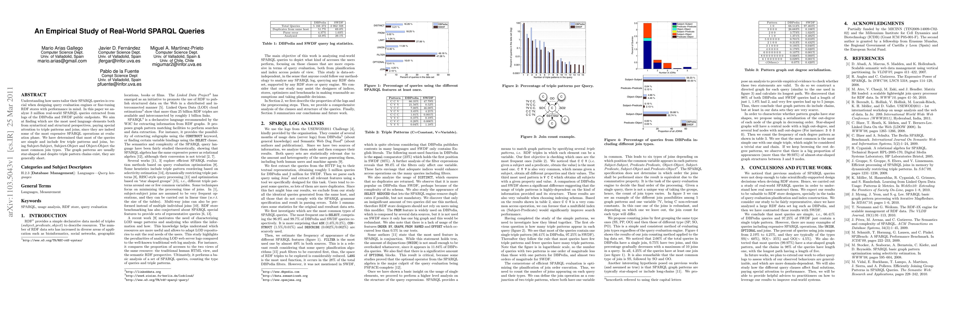 This study provides empirical evidence for SPARQL query construction patterns, which can inform RDF store design.