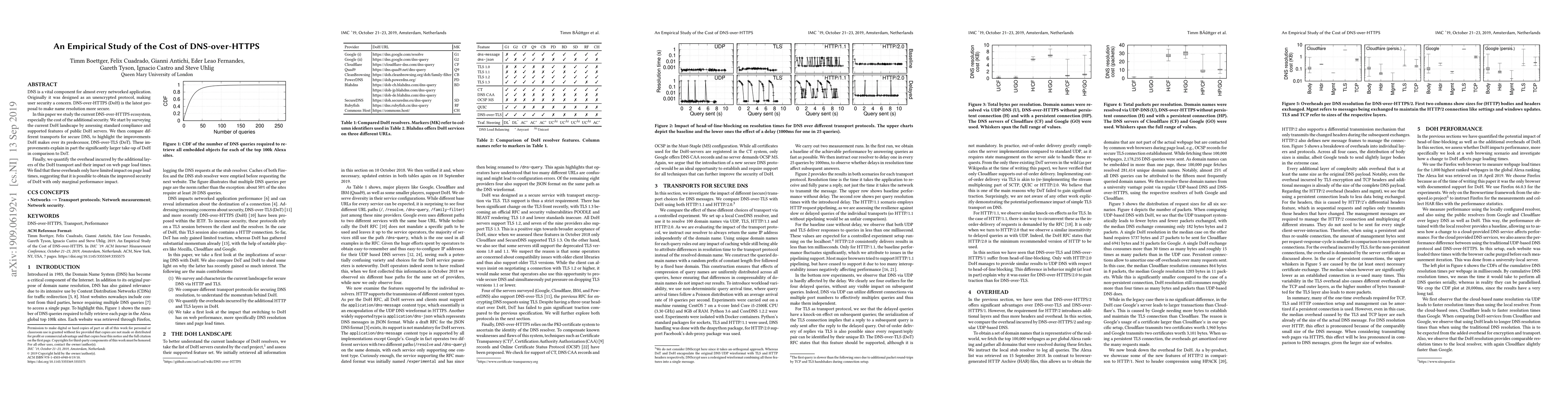 This study investigates the cost of DNS-over-HTTPS, finding that its security benefits come with only marginal performance impact on web page load times. It suggests that obtaining improved security is possible with limited performance costs.