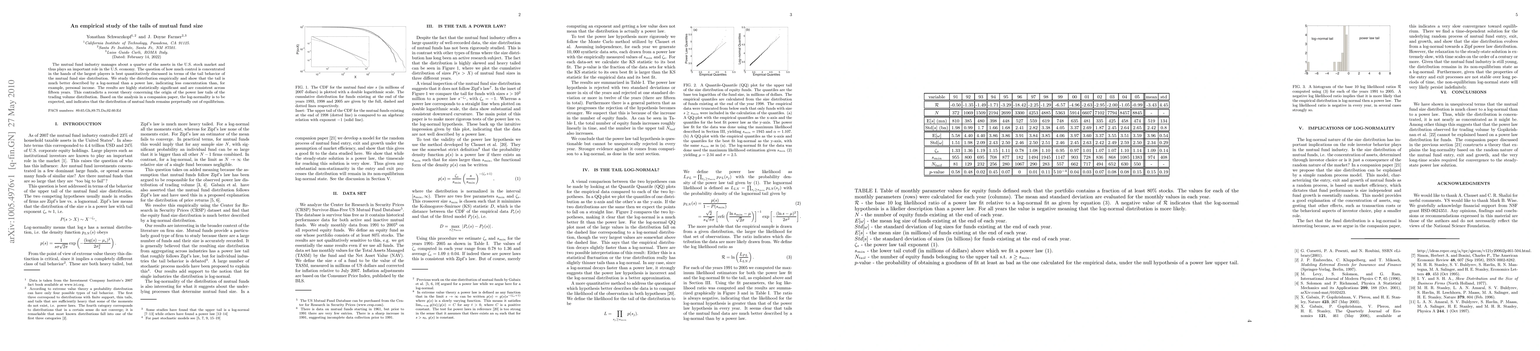 The mutual fund industry's size distribution is better described as log-normal rather than power law, indicating less concentration of assets in the hands of largest players. This finding contradicts a recent theory about trading volume distribution.