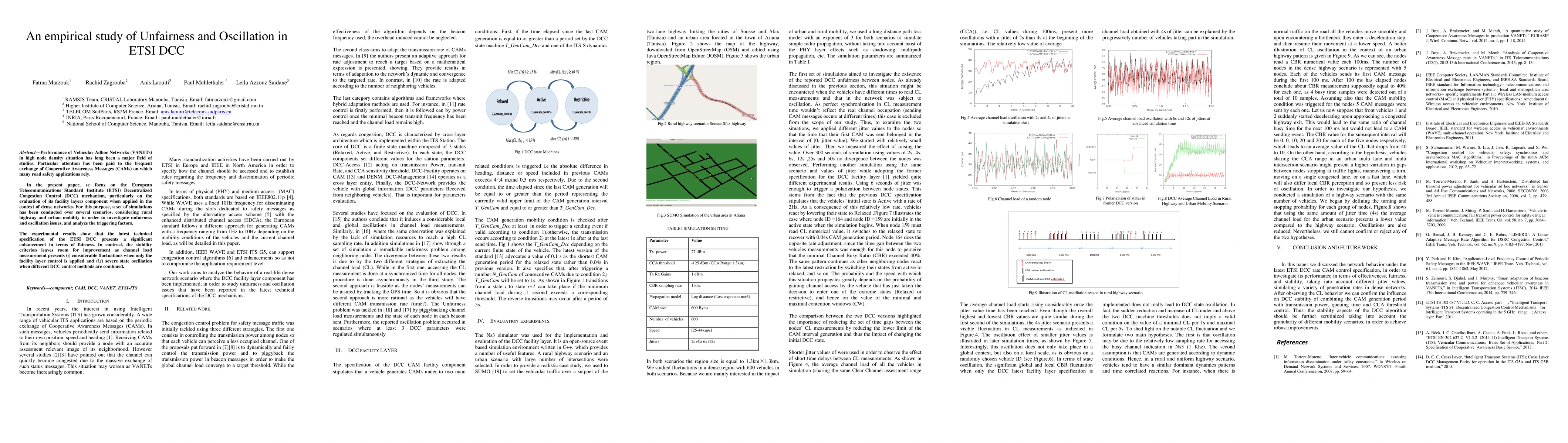 A set of simulations was conducted over several scenarios to investigate unfairness and oscillation issues in ETSI DCC.