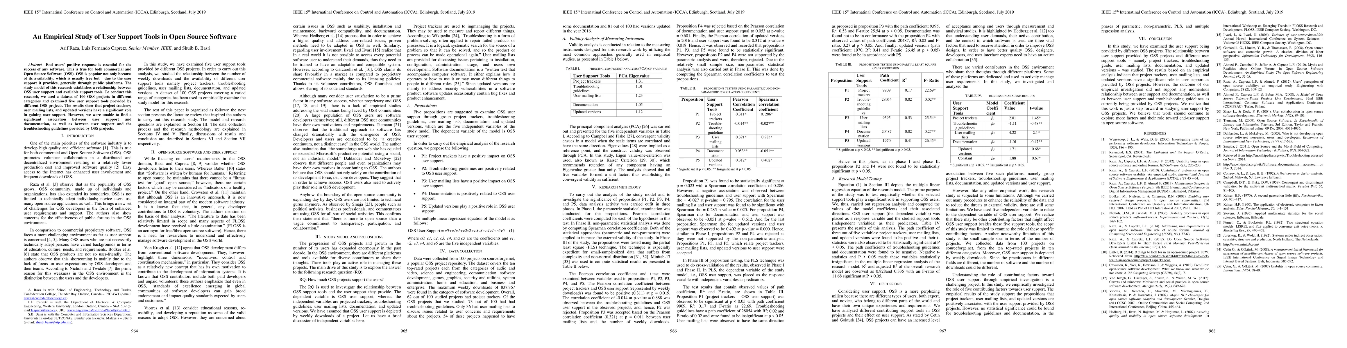 This study investigates the relationship between user support tools and user response in Open Source Software (OSS), analyzing 100 OSS projects. It finds that project trackers, user mailing lists, and updated versions significantly enhance user support, while documentation and troubleshooting guidelines do not show a significant association.