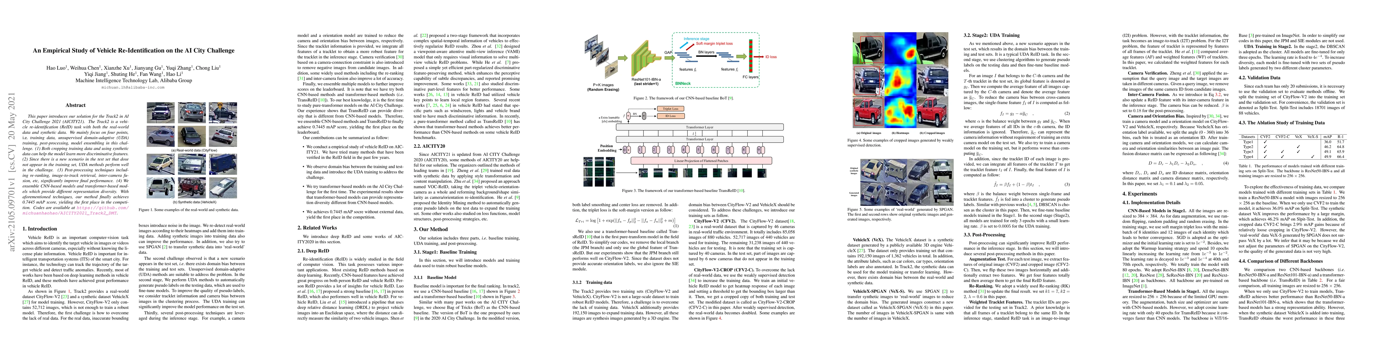 This paper presents an empirical study on vehicle re-identification for the AI City Challenge Track2, achieving first place with a 0.7445 mAP score. It utilizes cropping training data, synthetic data, unsupervised domain-adaptive training, post-processing techniques, and model ensembling to enhance feature discrimination and performance.